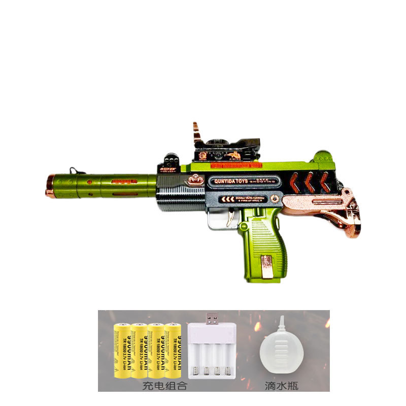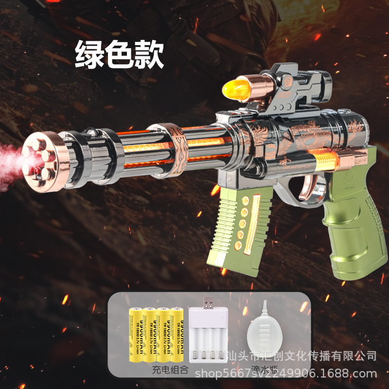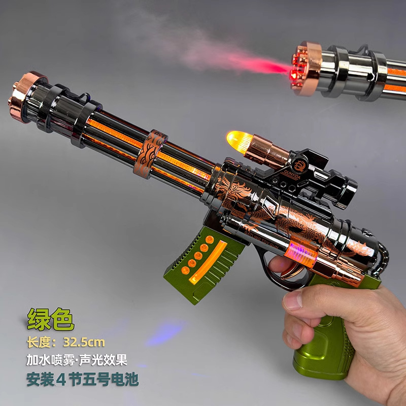 • 696-27 전기 스프레이 소리와 가벼운 개틀링 총 [녹색] 가방에는 배터리가 포함되어 있지 않습니다.