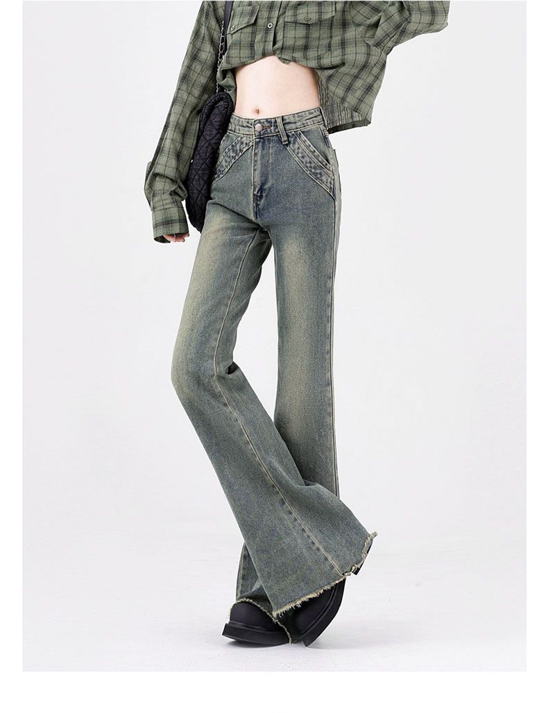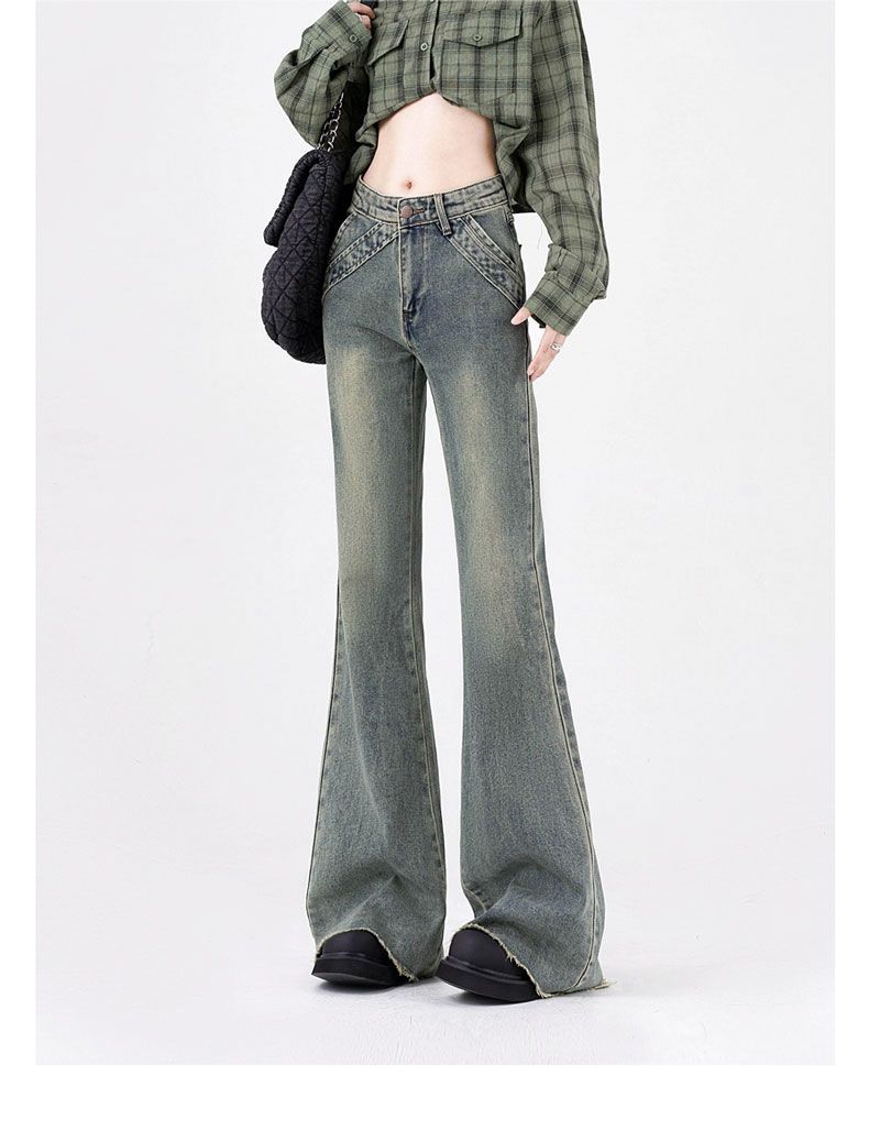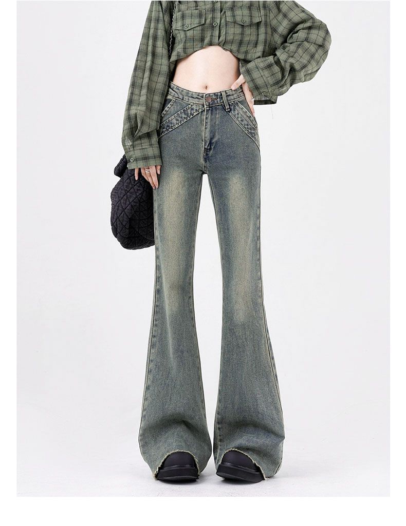 2025 봄과 가을 리머 마이크로 청바지 여성용 스티칭 탄성 포켓 높은 허리 슬림-적합 미국 혼 말굽 바지
