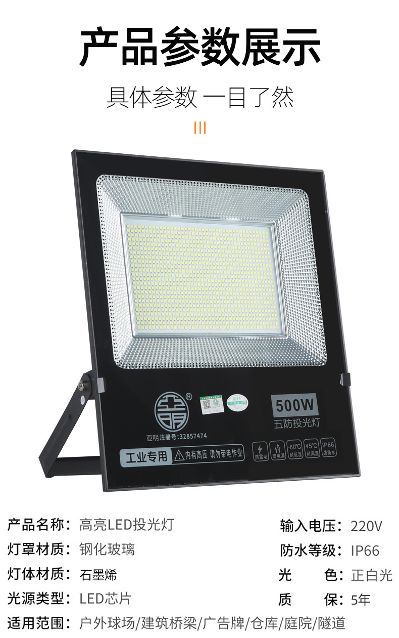 Yaming led 홍수 빛 100W200 와트 스포트라이트 프로브 투광 조명 야외 방수 광고 공장 작업장 조명스토어 가기