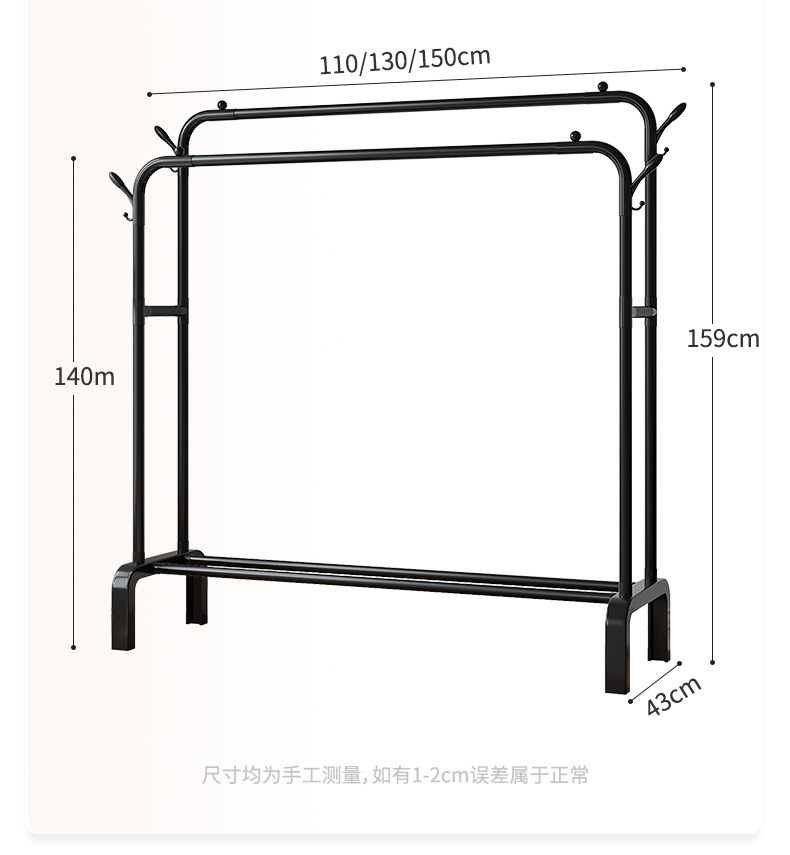 • 이중극 150cm 강화 블랙丨수납선반+코트고리