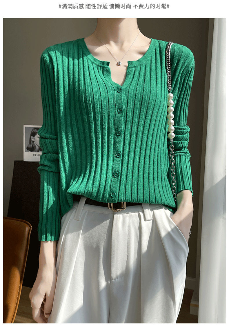 2024 년 가을 새로운 라운드 넥 니트 카디건 재킷 여자 쇼트 올 매치 핏 스웨터 여성용 루즈 아우터 긴 소매스토어 가기