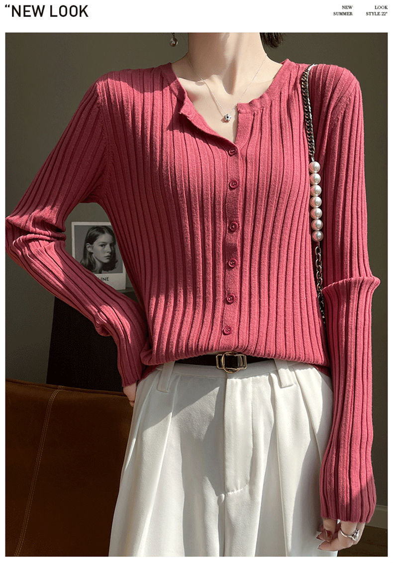 2024 년 가을 새로운 라운드 넥 니트 카디건 재킷 여자 쇼트 올 매치 핏 스웨터 여성용 루즈 아우터 긴 소매