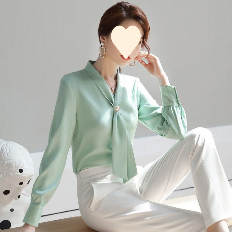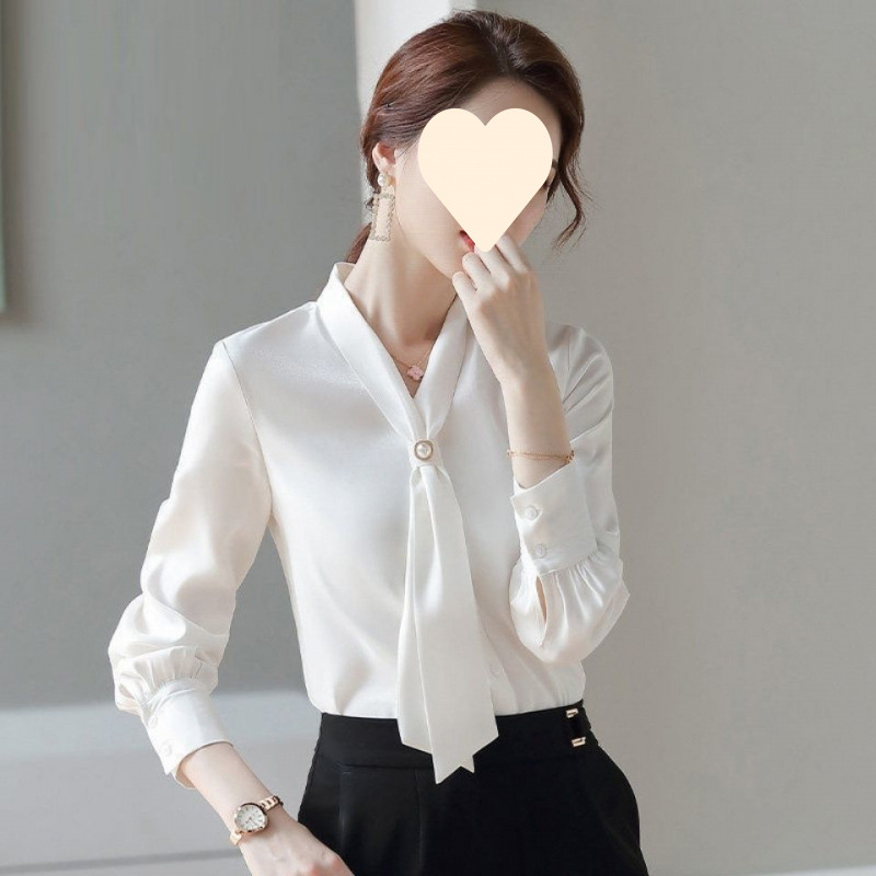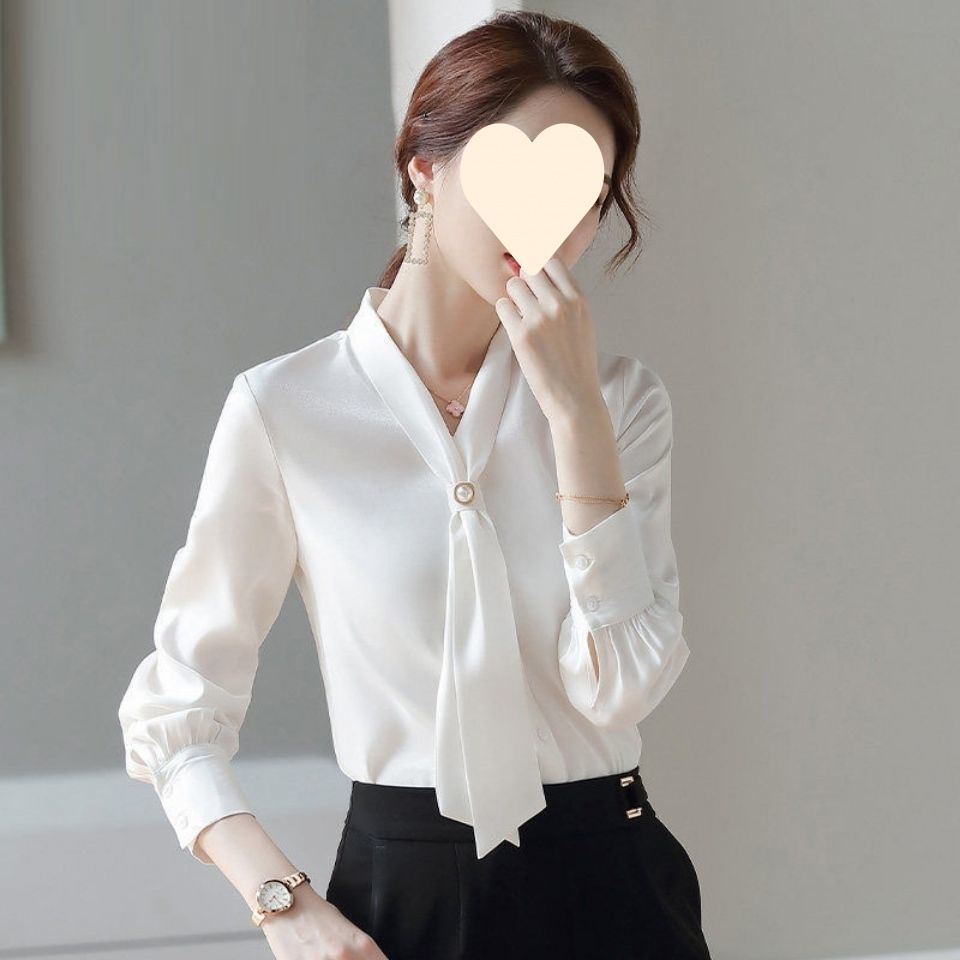 쉬폰 화이트 셔츠 여성의 새로운 2024 디자인 센스 니쉬 탑 draped 감각 우아한 긴 소매 봄과 가을 화이트 셔츠스토어 가기