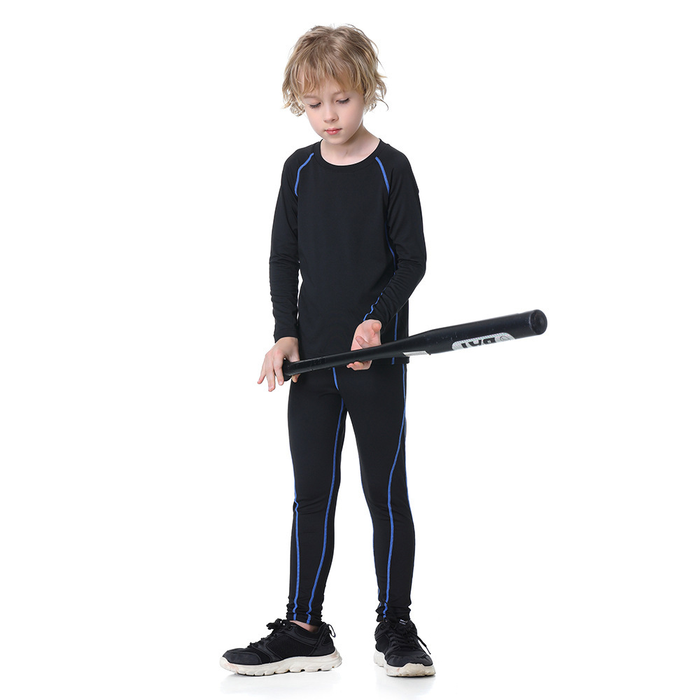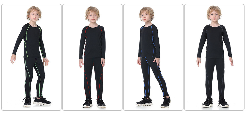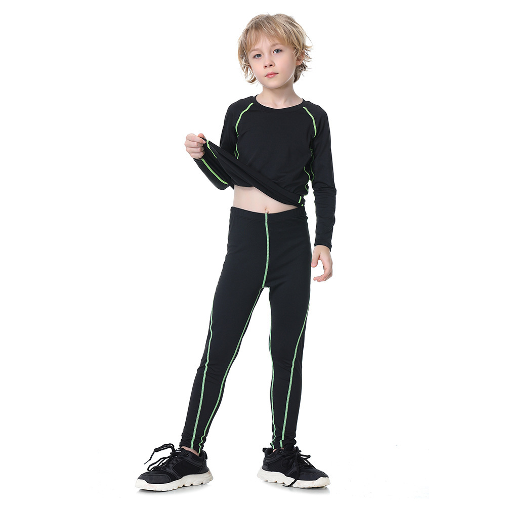 국경 간 기모 어린이 타이트 세트 남자 단색 크루 넥 피트니스웨어 러닝 축구 스포츠웨어 투피스 세트
