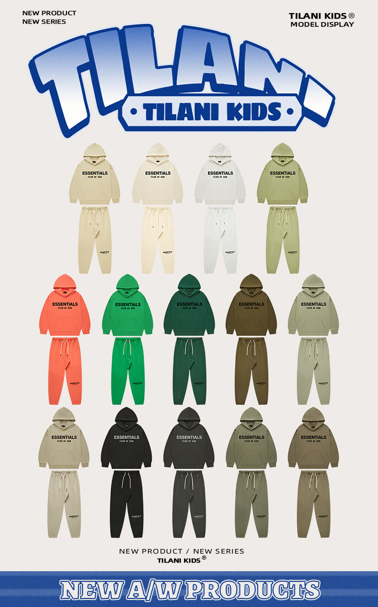 TILANI 아동복 패션 브랜드 잘 생긴 하이 퀄리티 FOG 두꺼운 접시 25 년 이른 봄 ess 소년과 소녀를위한 국경 간 세트스토어 가기