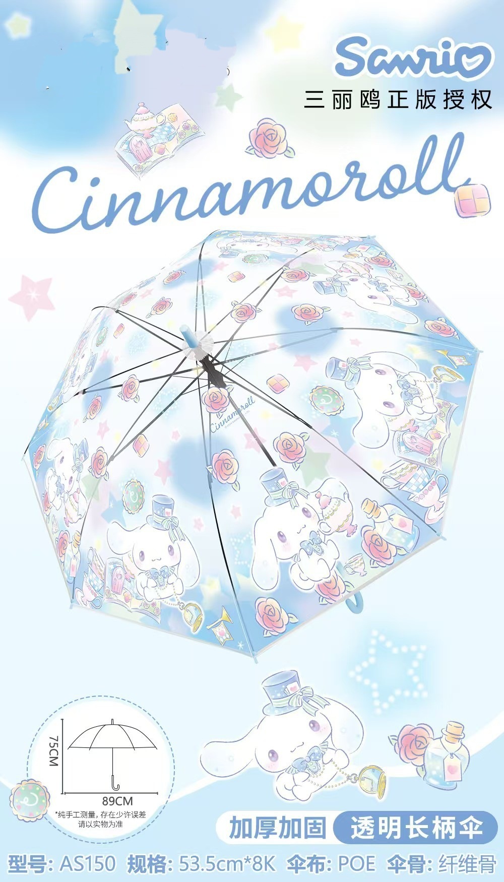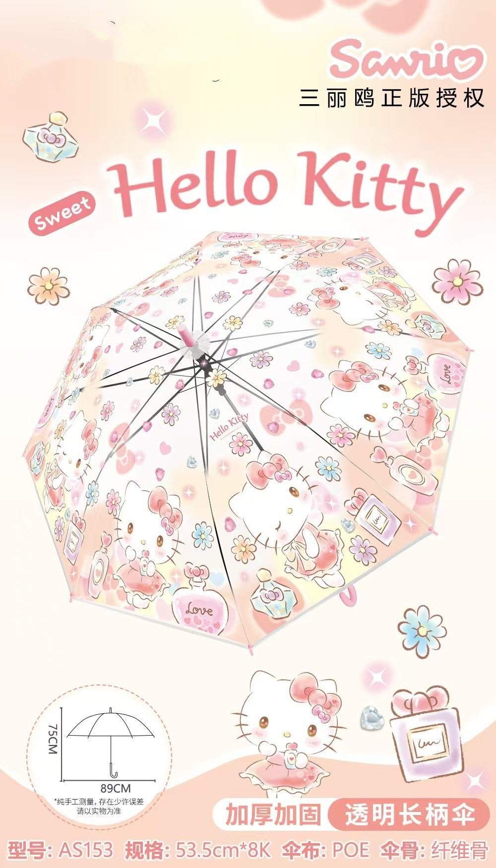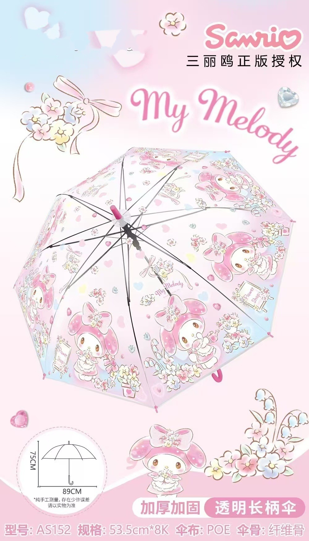 정품 산리오 우산 어린이 친환경 우산 귀여운 만화 쿠로미 스트레이트 롱 핸들 자동 투명 우산스토어 가기