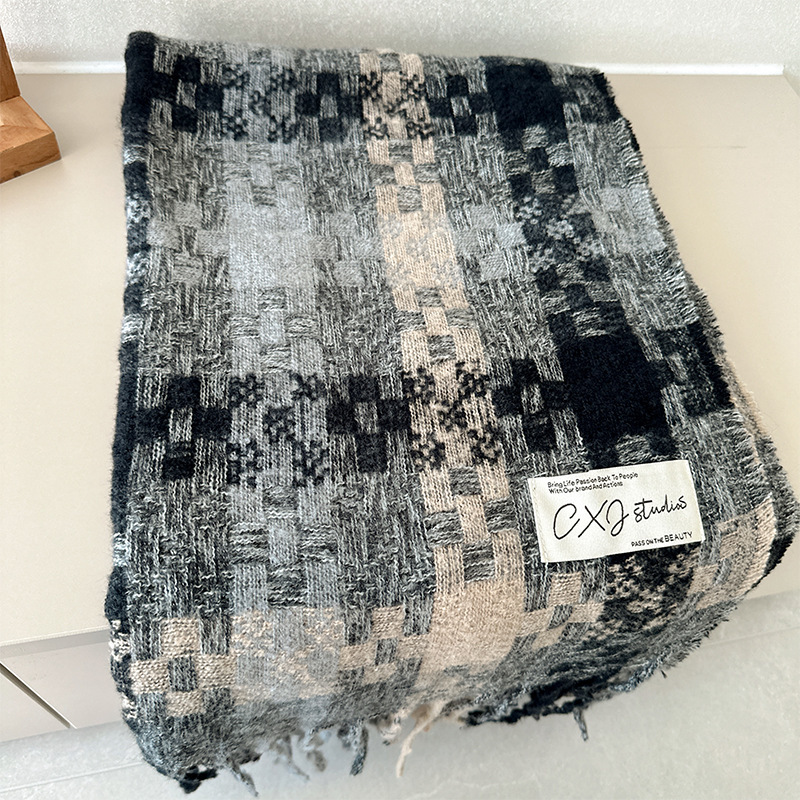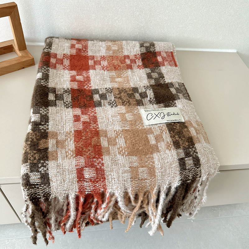 가을과 겨울 분위기 남성과 여성을위한 Sense Plaid Tassel 따뜻한 스카프 추가 두꺼운 긴 니트 목 목도리 새로운스토어 가기