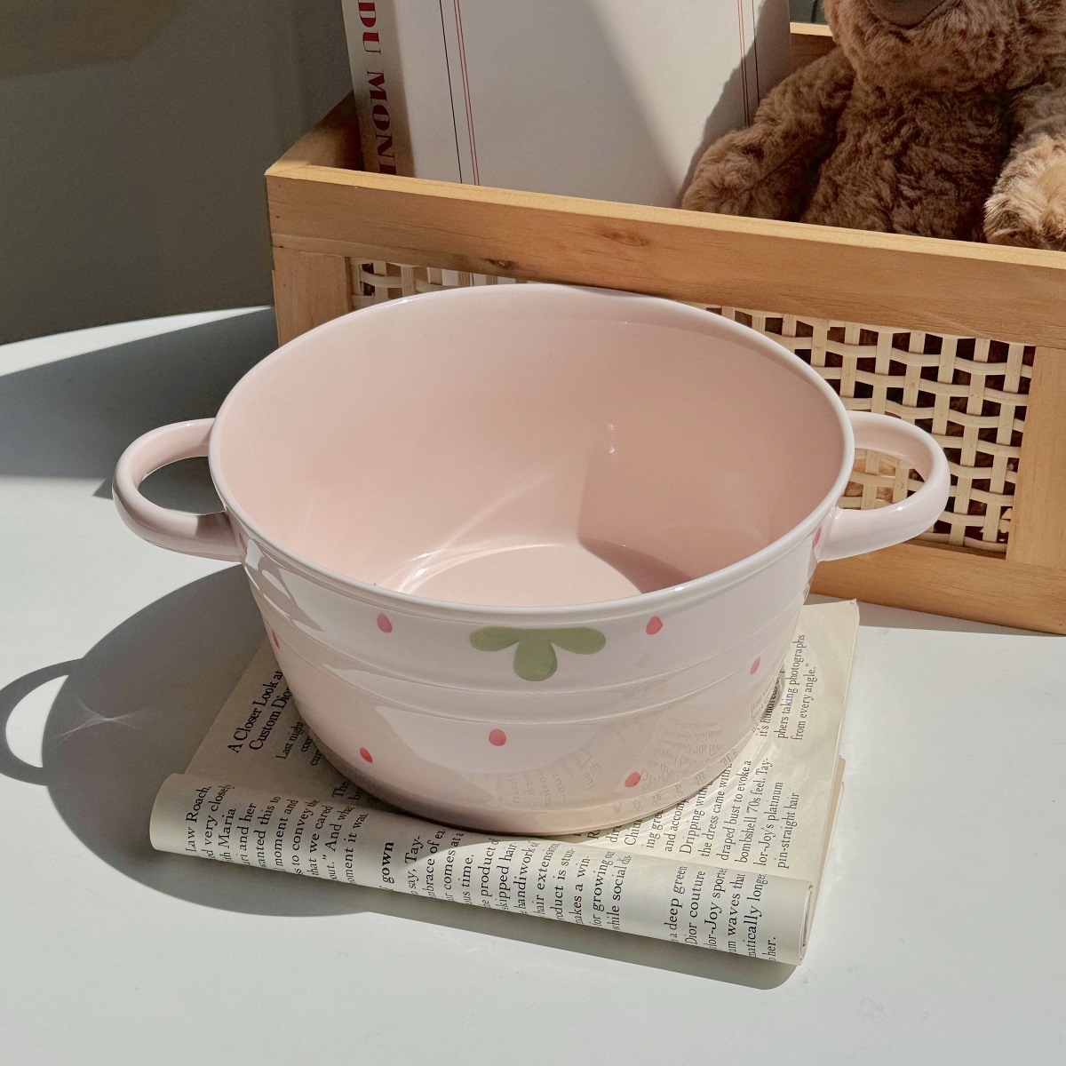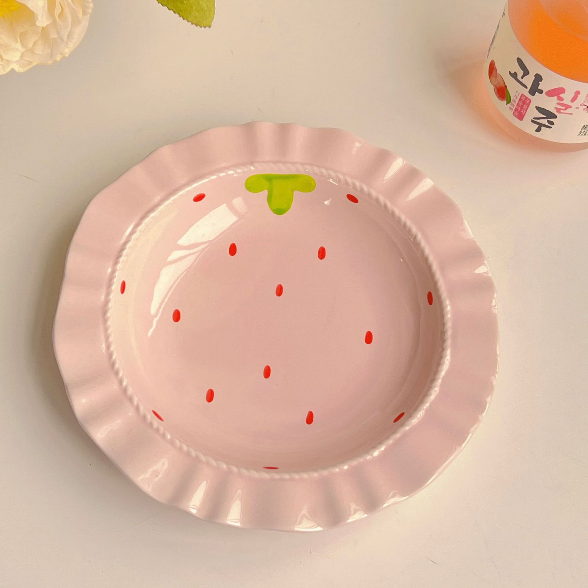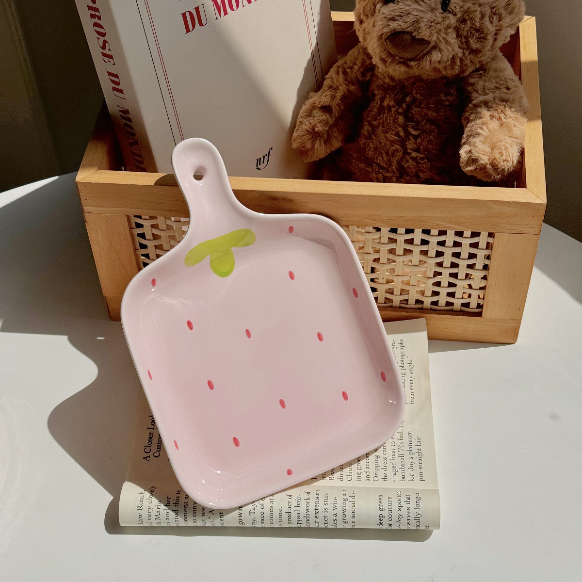 Ins 스타일 딸기 세라믹 요리 가정용 손잡이 요리 불안정한 깔끔한 그릇 2024 높은 색상 가치 식기 식기 세트스토어 가기