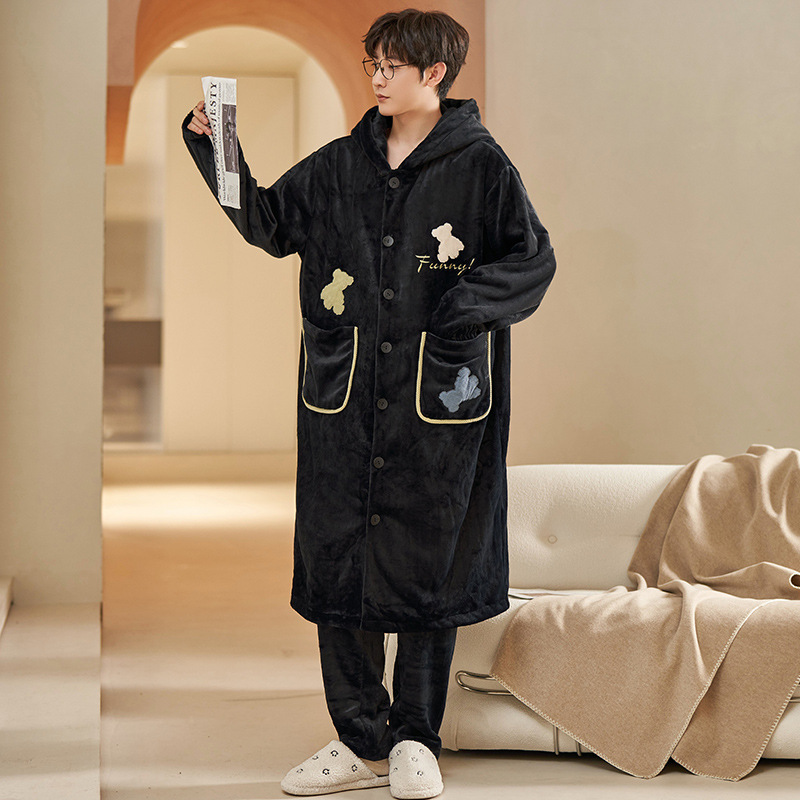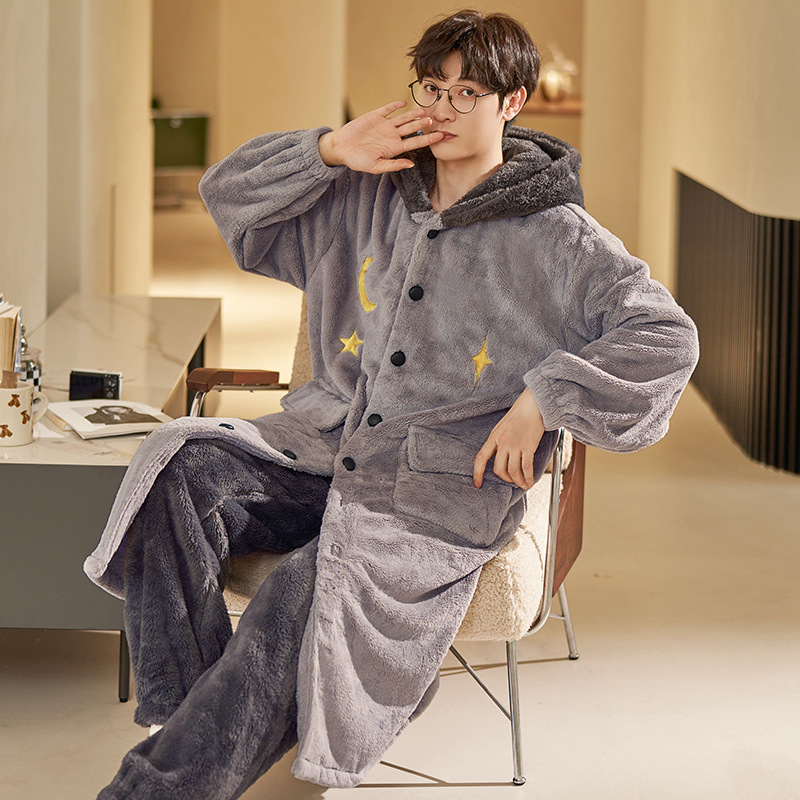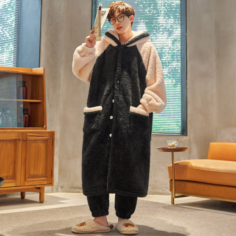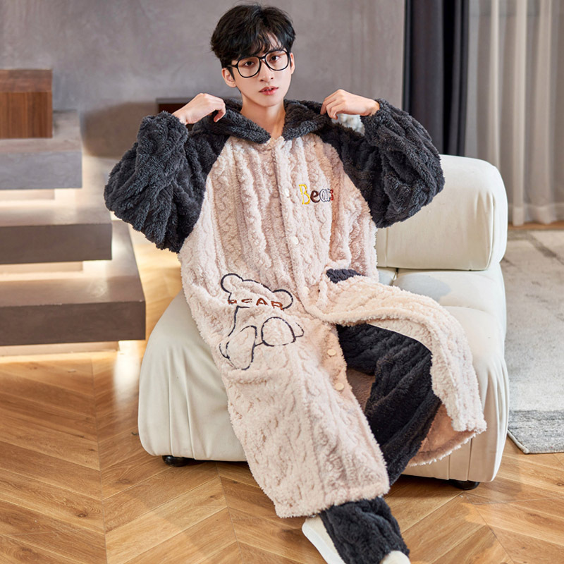 Peiyan Winter Flannel Nightgress 남자 두꺼운 긴 파자마 산호 양털 목욕 가운 플러스 사이즈 남자 홈 옷