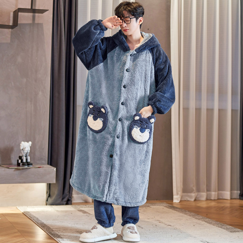 Peiyan Winter Flannel Nightgress 남자 두꺼운 긴 파자마 산호 양털 목욕 가운 플러스 사이즈 남자 홈 옷스토어 가기