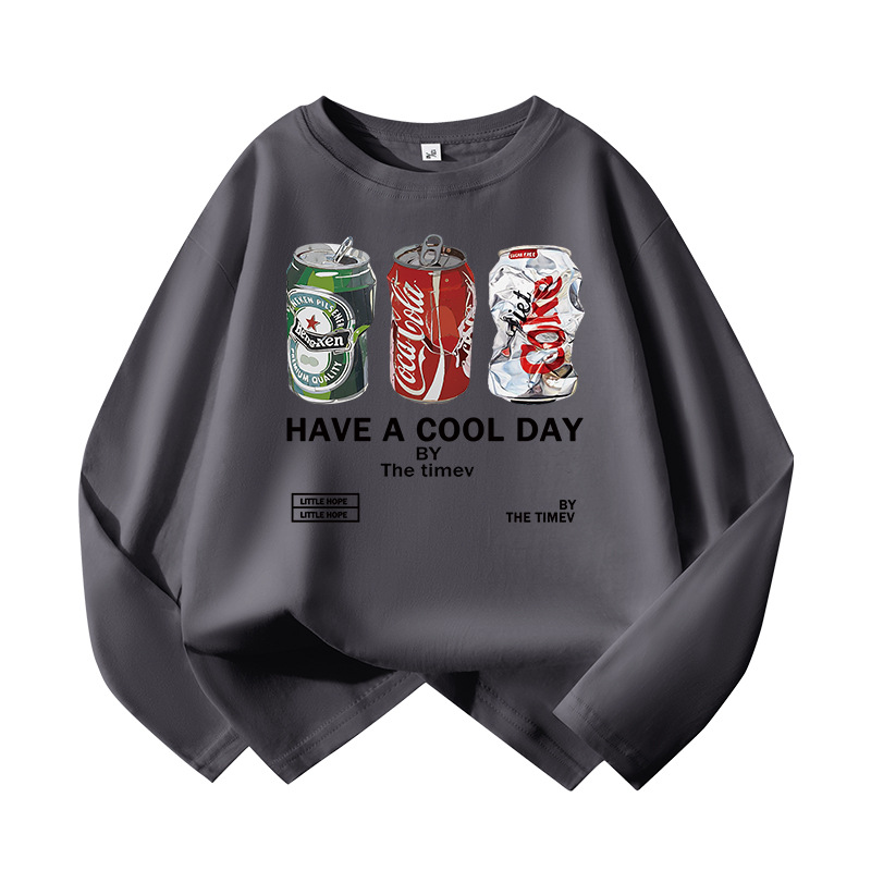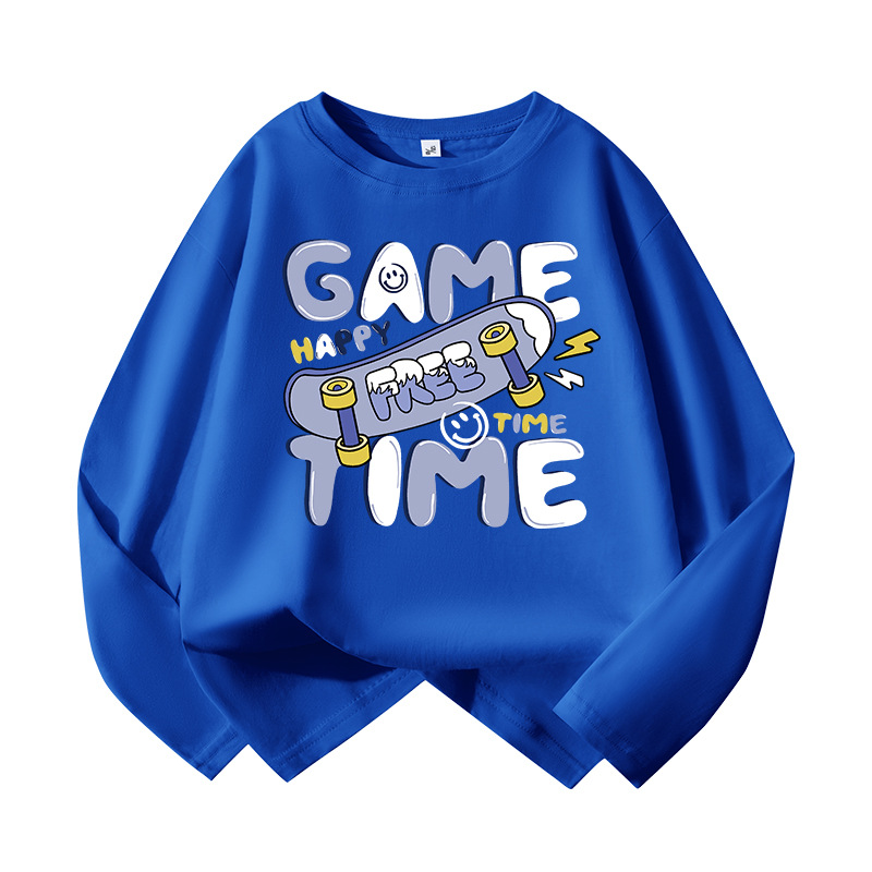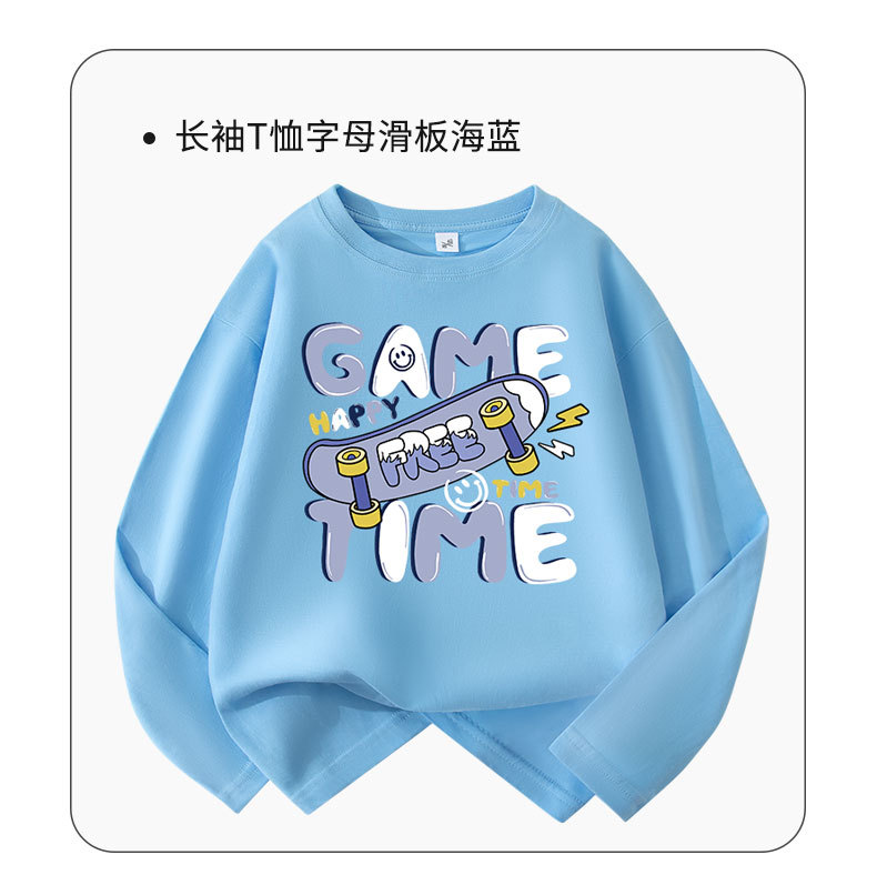 소년의 긴 소매 티셔츠 봄과 가을 순면 탑 2024 새로운 스타일 중 큰 어린이의 유행베이스 셔츠 어린이 옷 유행스토어 가기
