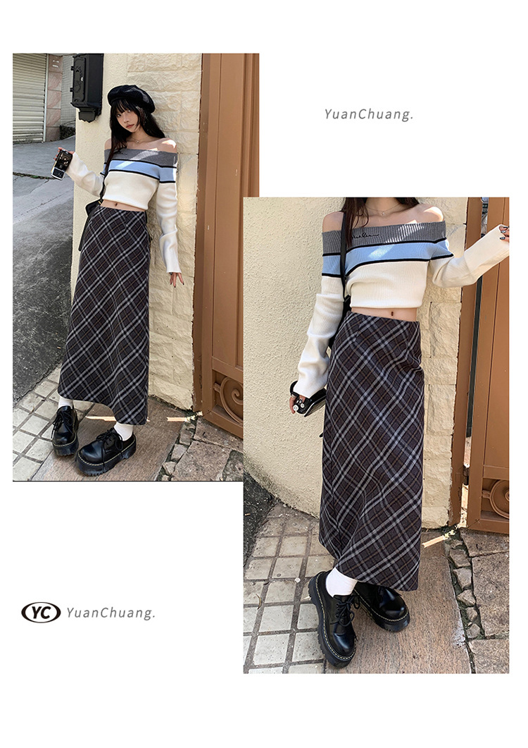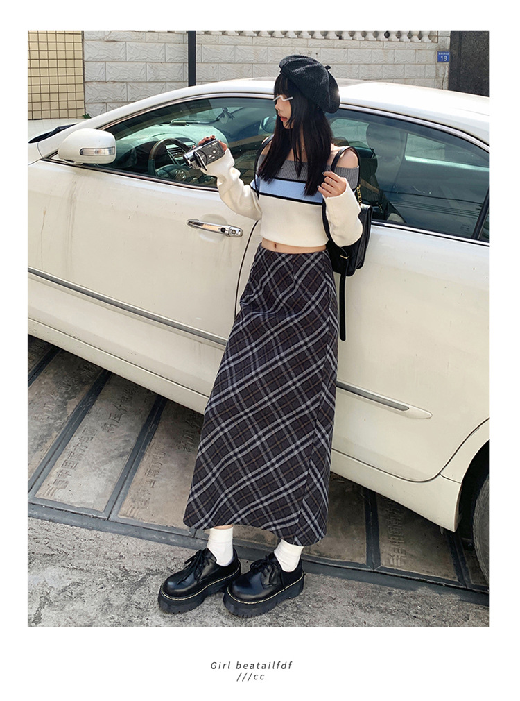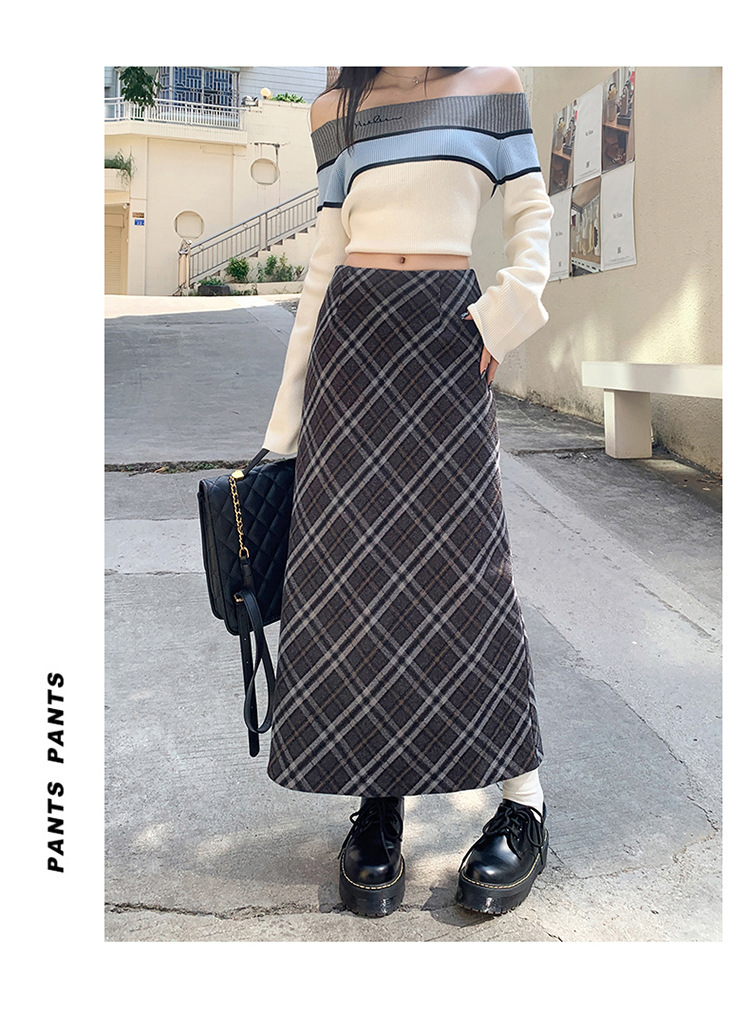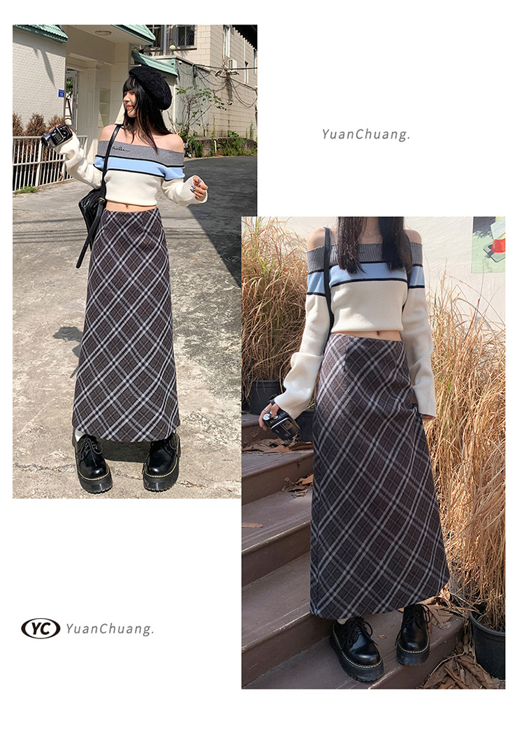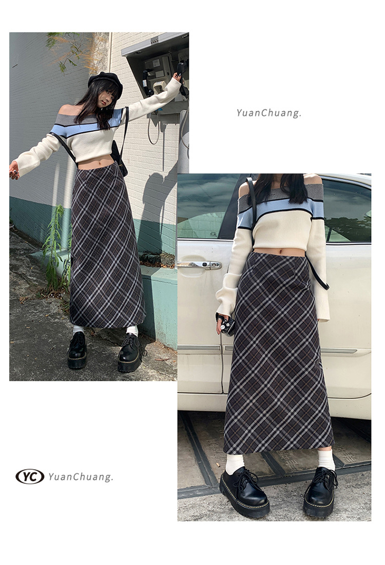 YC & 높은 허리 레트로 격자 무늬 바지 스커트 A 라인 스커트 조커 슬림 우아한 엉덩이 스커트 가을과 겨울 새로운 격자 무늬