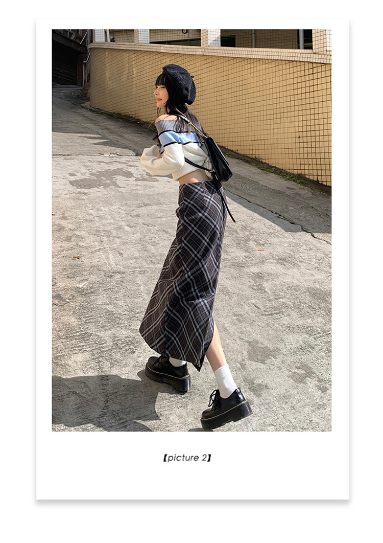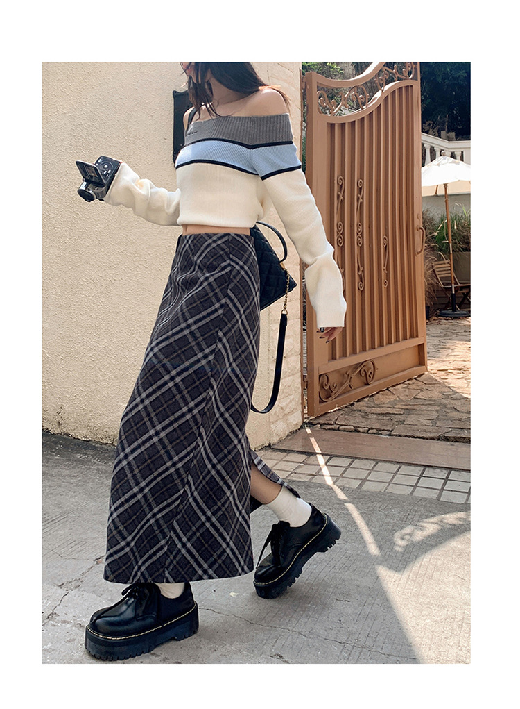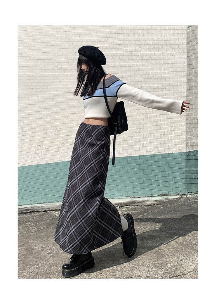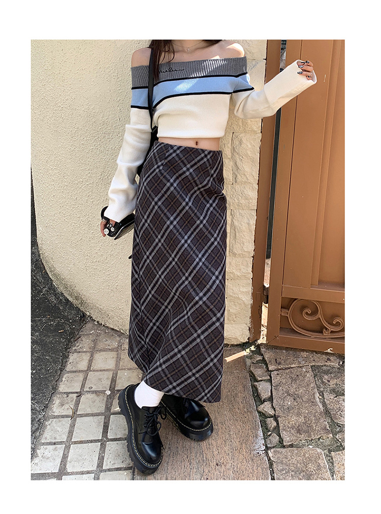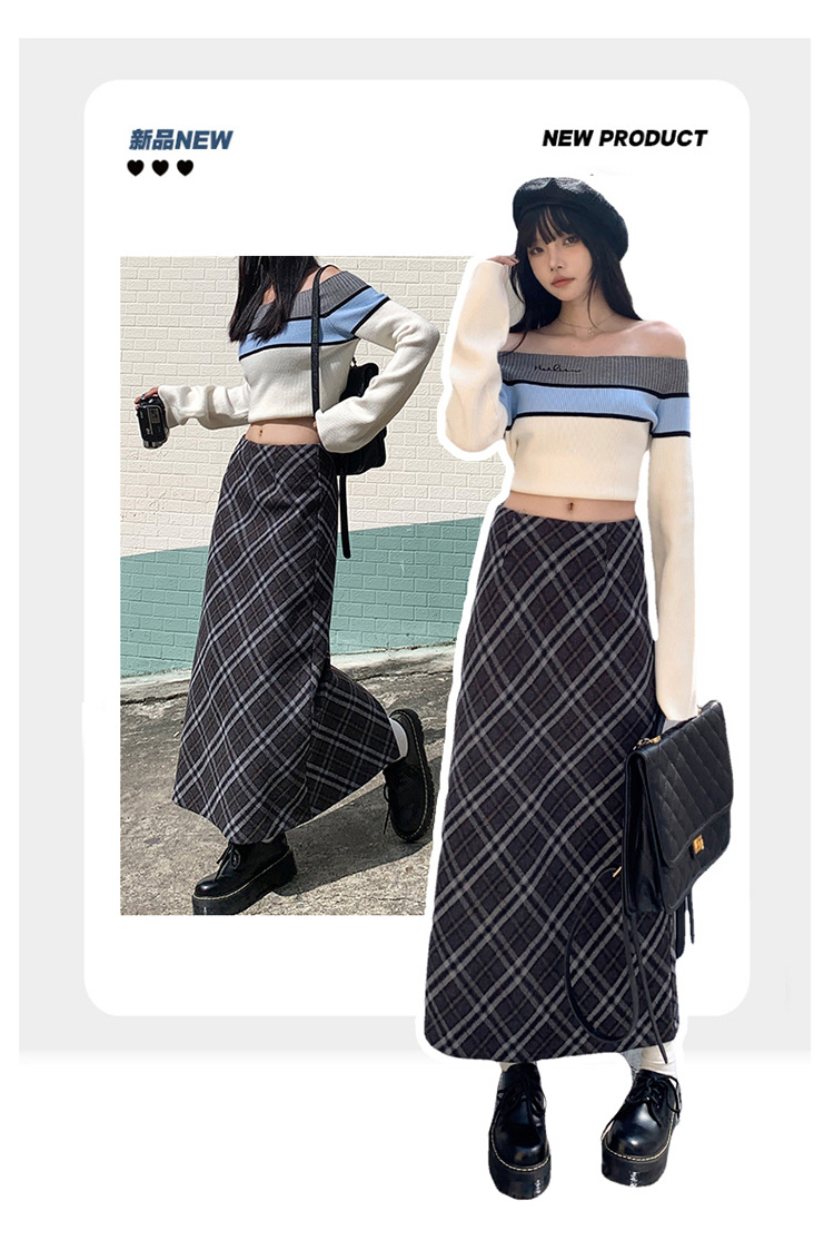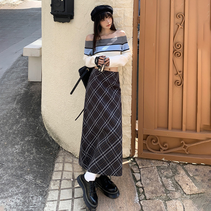 YC & 높은 허리 레트로 격자 무늬 바지 스커트 A 라인 스커트 조커 슬림 우아한 엉덩이 스커트 가을과 겨울 새로운 격자 무늬