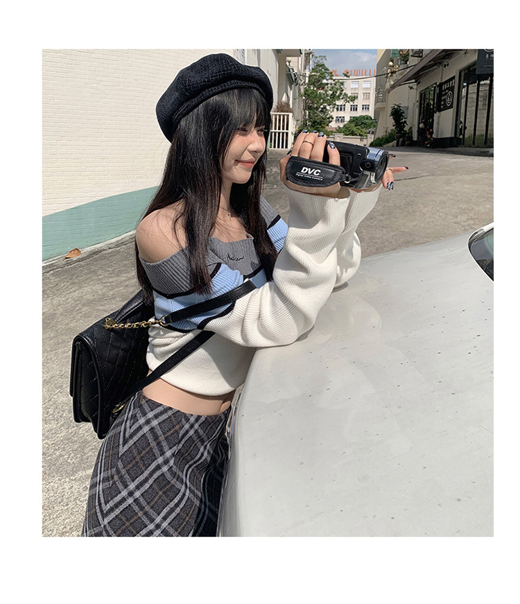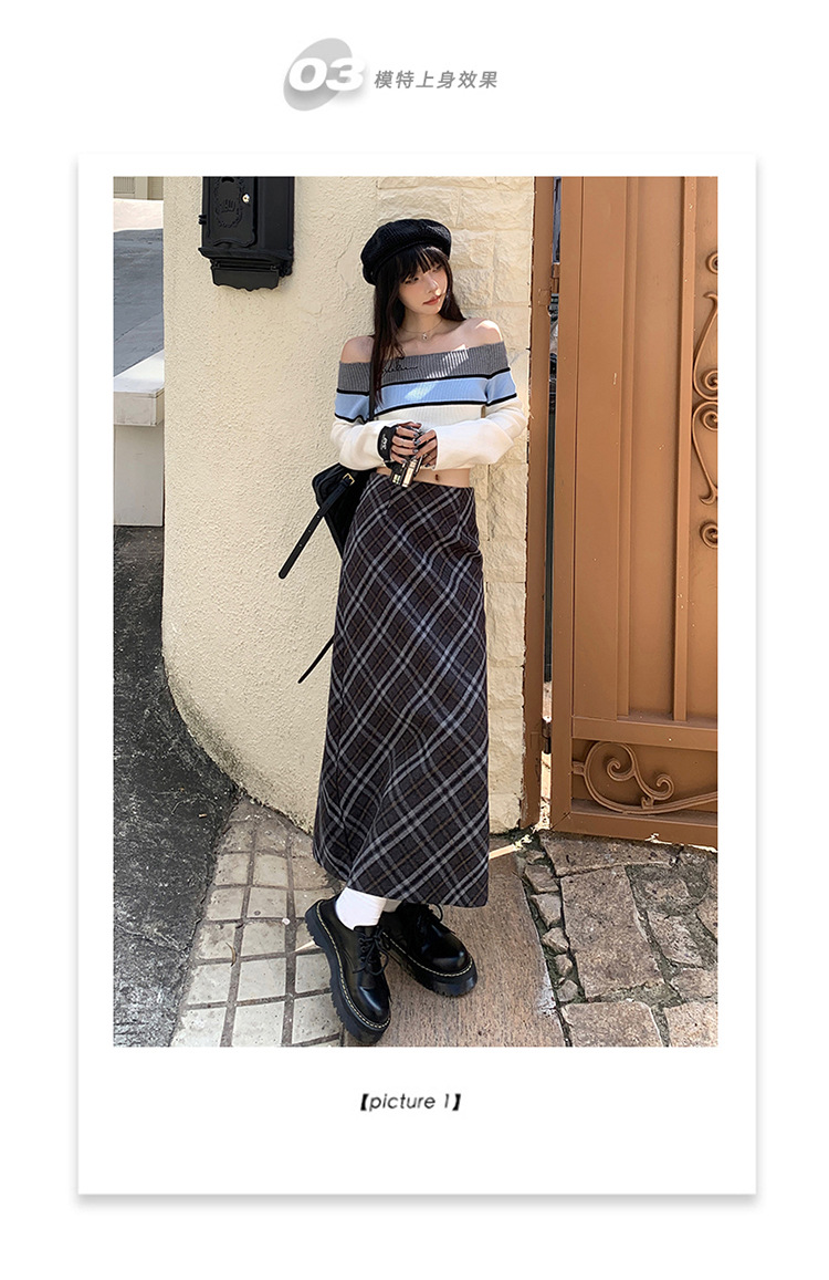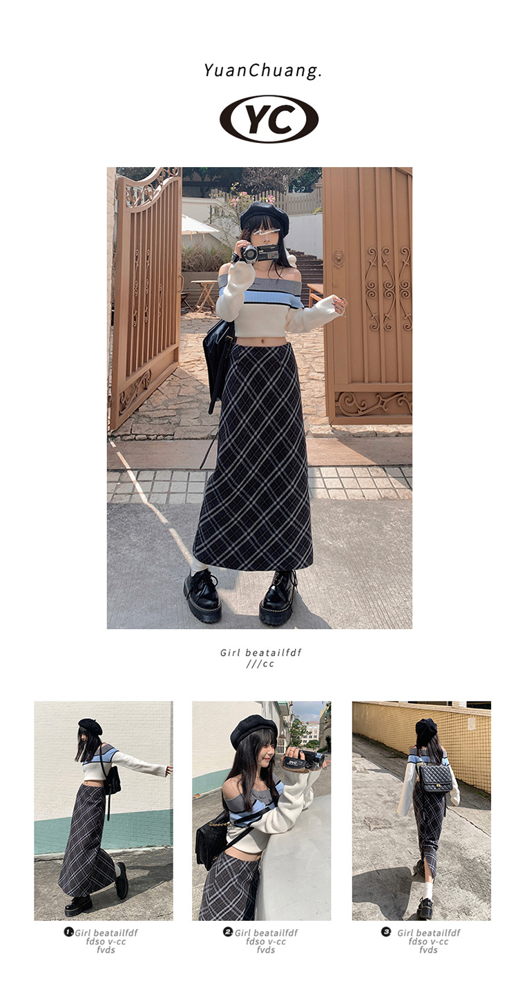YC & 높은 허리 레트로 격자 무늬 바지 스커트 A 라인 스커트 조커 슬림 우아한 엉덩이 스커트 가을과 겨울 새로운 격자 무늬스토어 가기