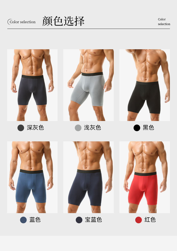 大码运动黑色跨境加长透气牛奶丝男士 抑菌防磨腿平角速干内裤男