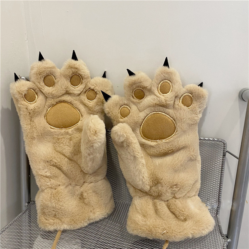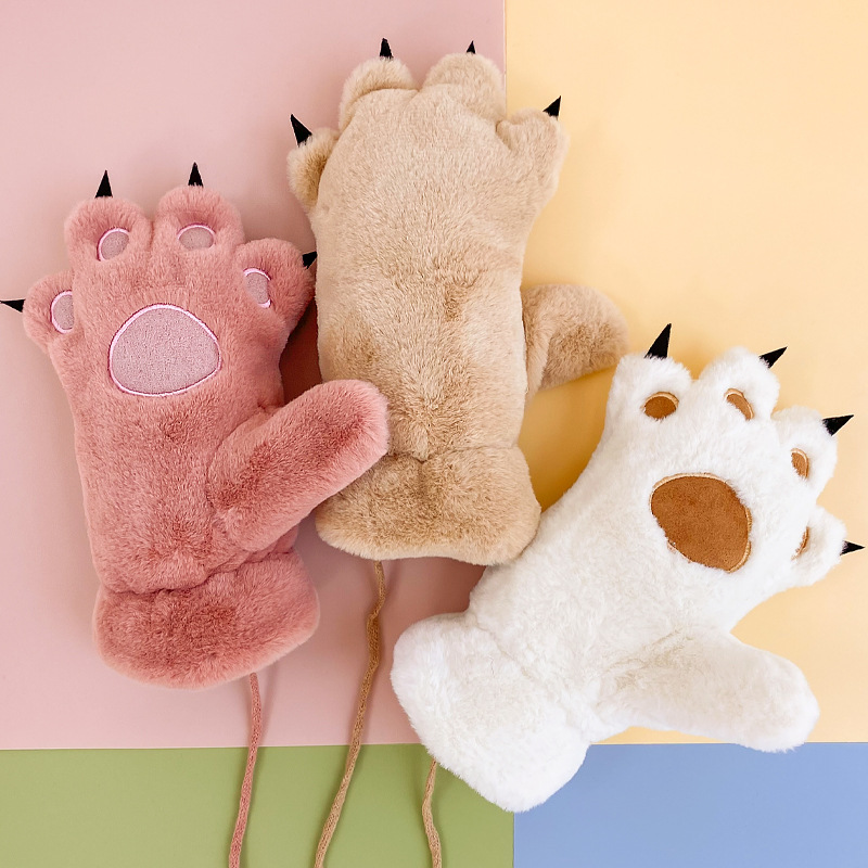 새로운 곰 발톱 장갑 귀여운 대학 스타일 겨울 기모 학생들을위한 두꺼운 감기 방지 따뜻한 장갑 자전거 목에 매달린 장갑스토어 가기