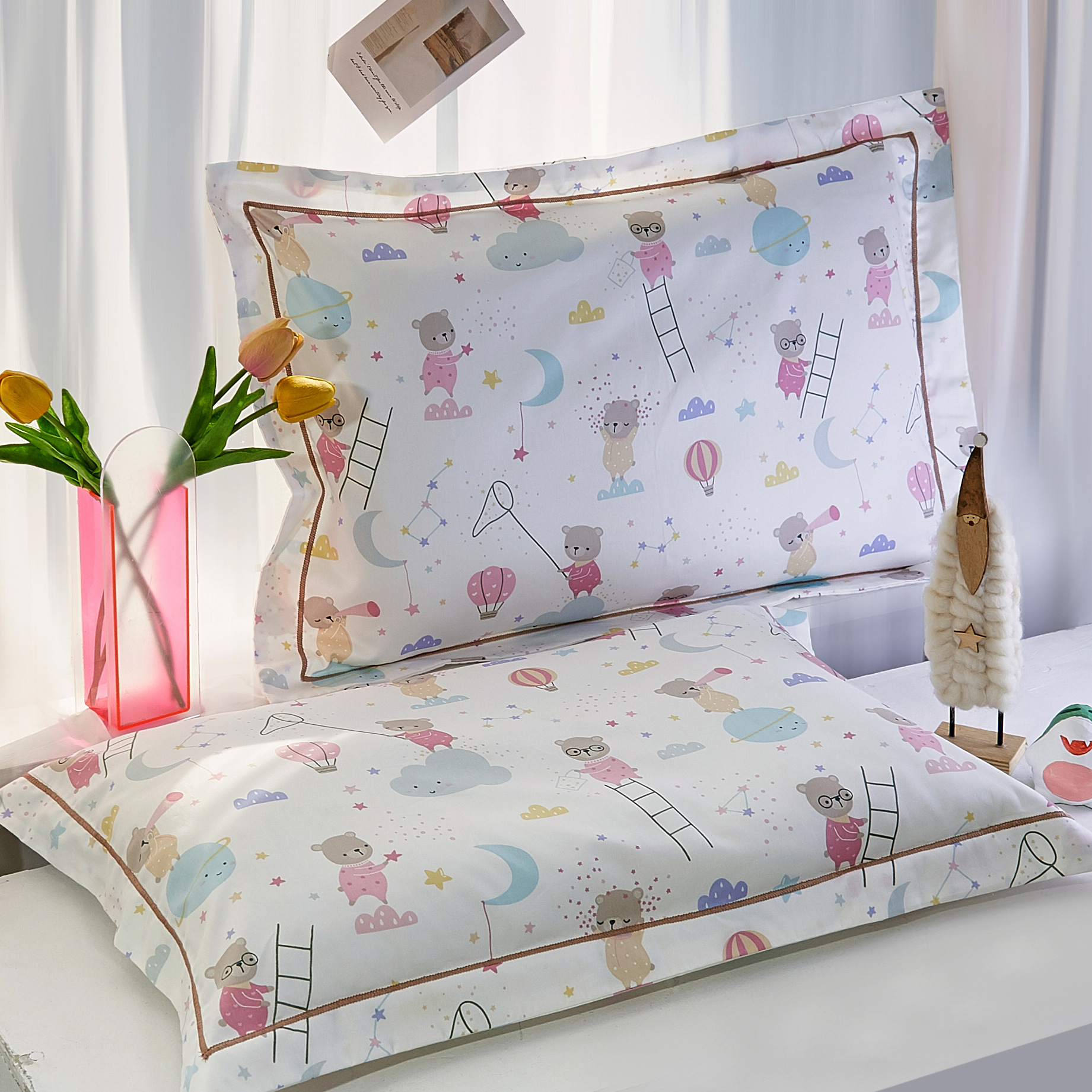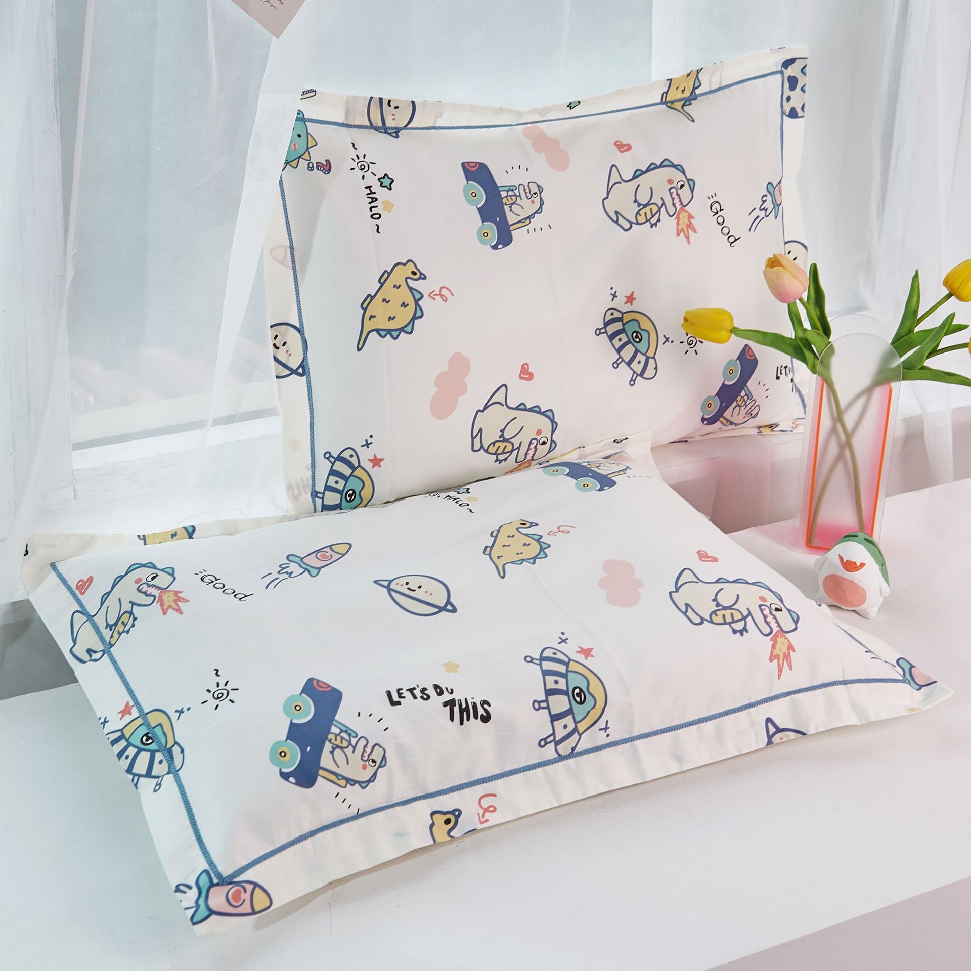 대외 무역 국경 2024 새로운 클래스 60 긴 스테이플 코튼 어린이 베갯잇의 만화 면화 베개 케이스 유치원 인쇄스토어 가기