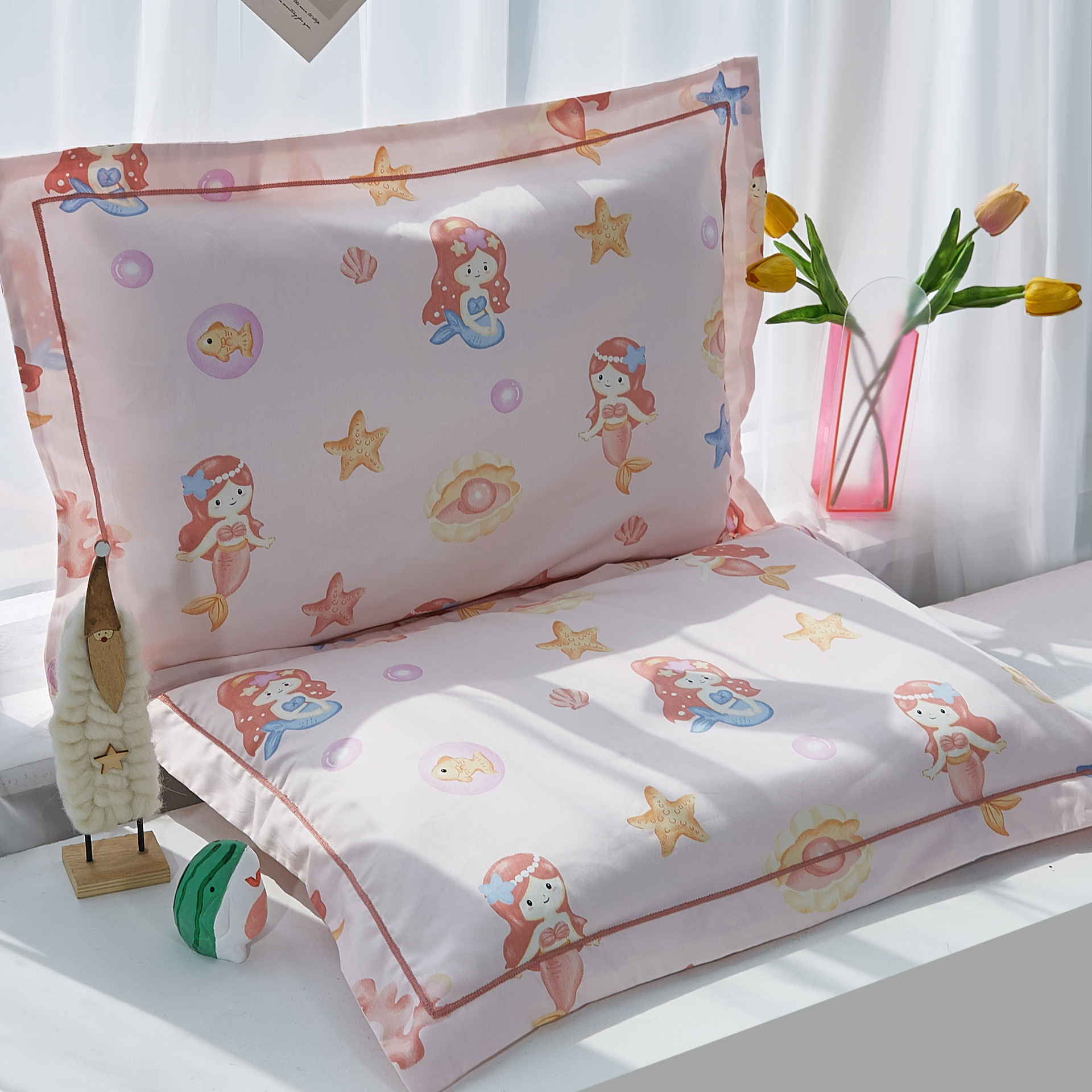 대외 무역 국경 2024 새로운 클래스 60 긴 스테이플 코튼 어린이 베갯잇의 만화 면화 베개 케이스 유치원 인쇄