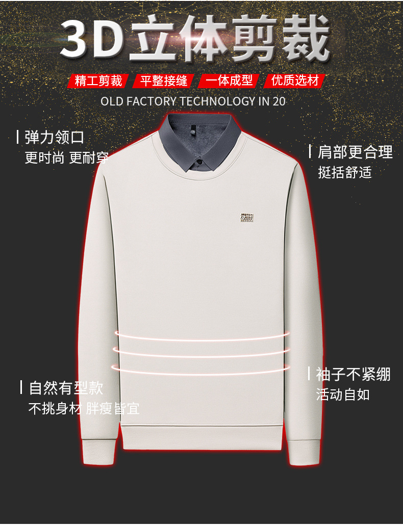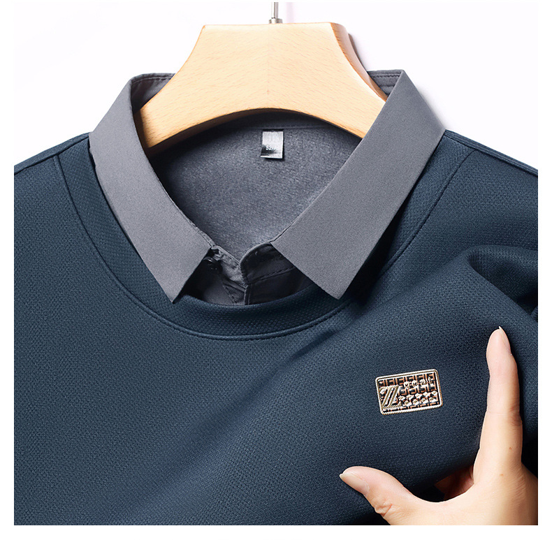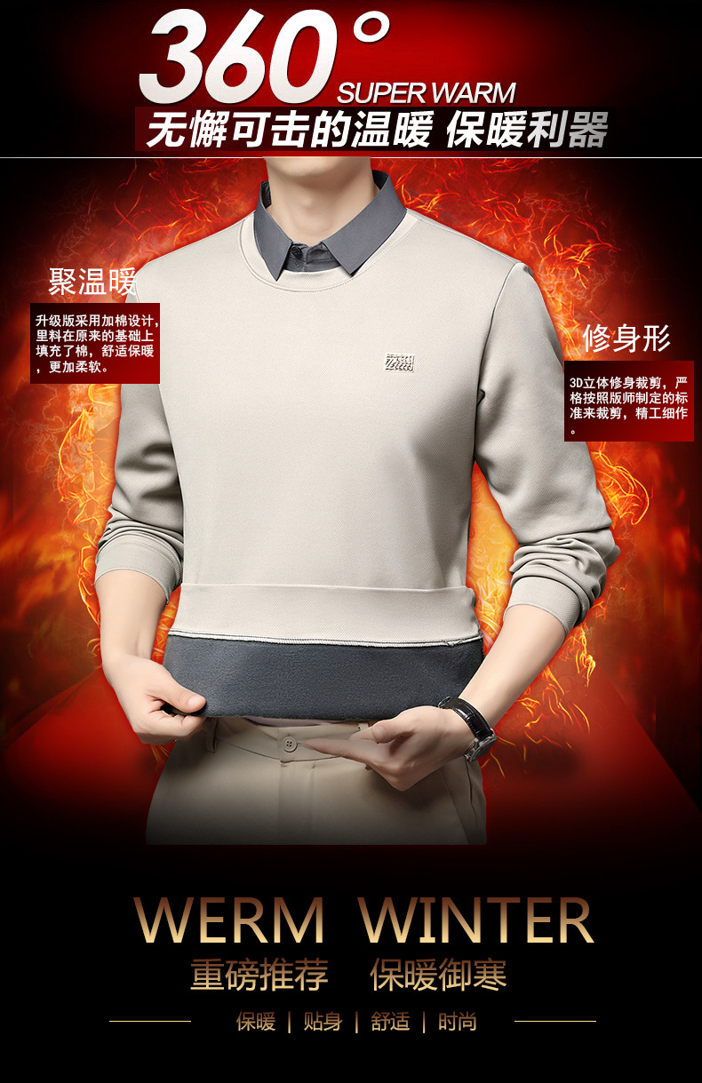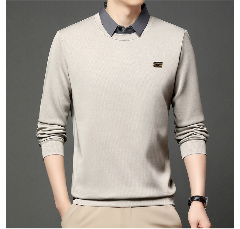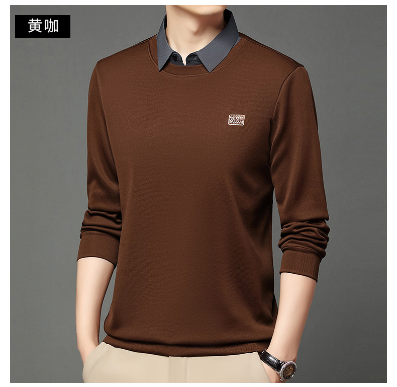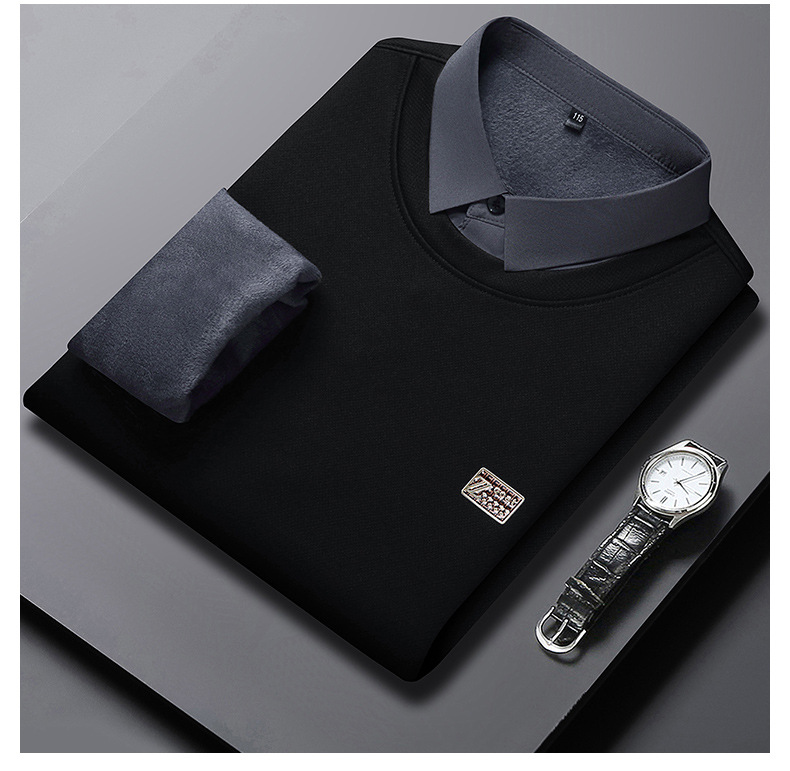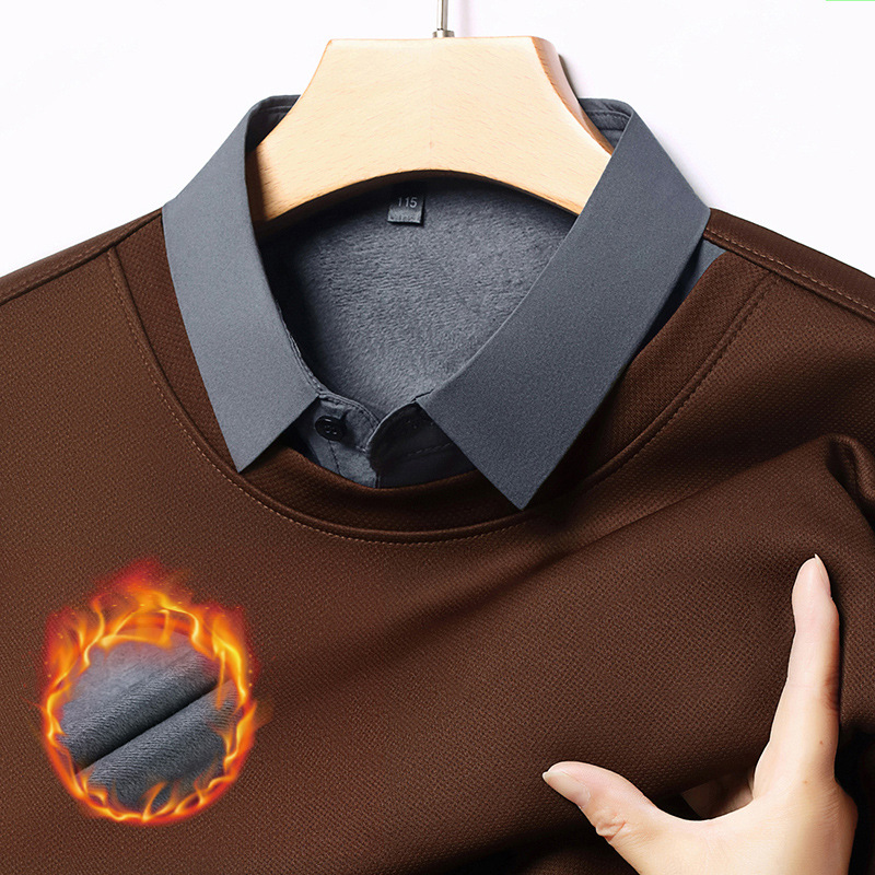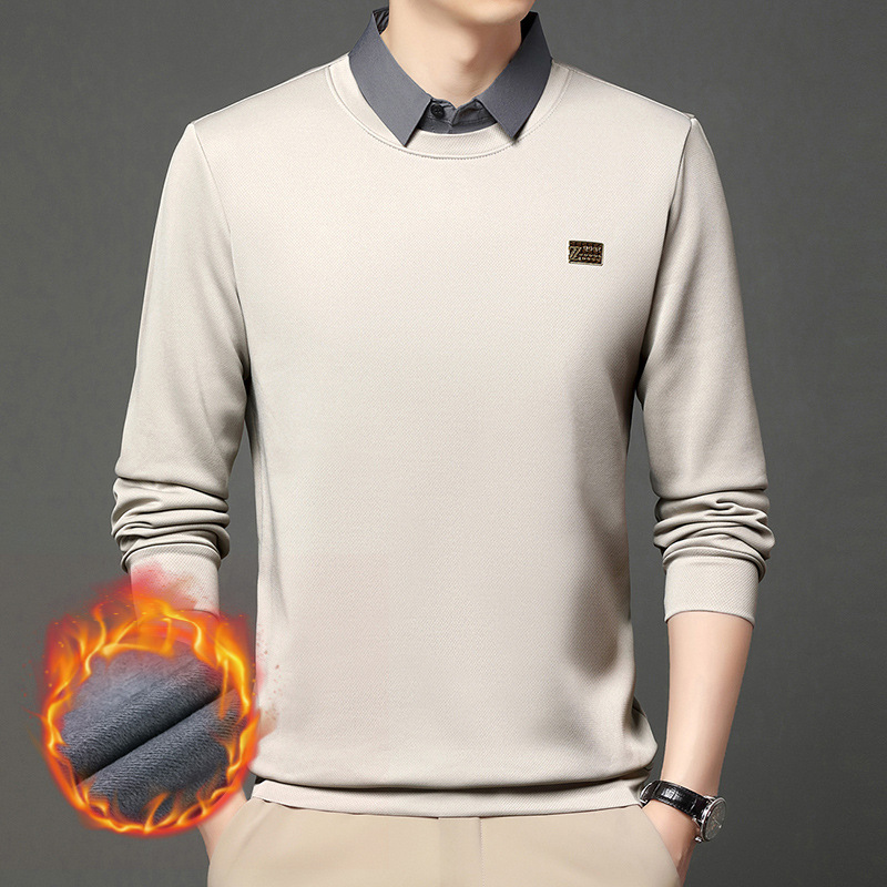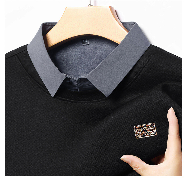 가을과 겨울 셔츠 칼라 남자의 긴팔 유행 간단한 스웨터 젊고 중년의 가짜 투피스 기모 베이스 우아한 스웨터