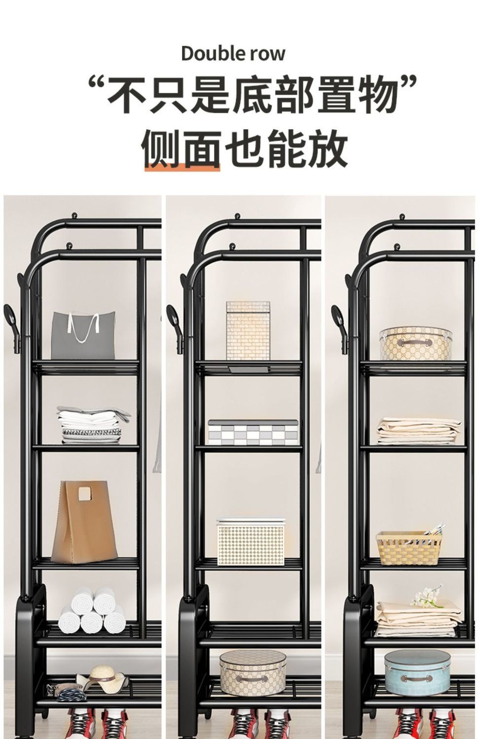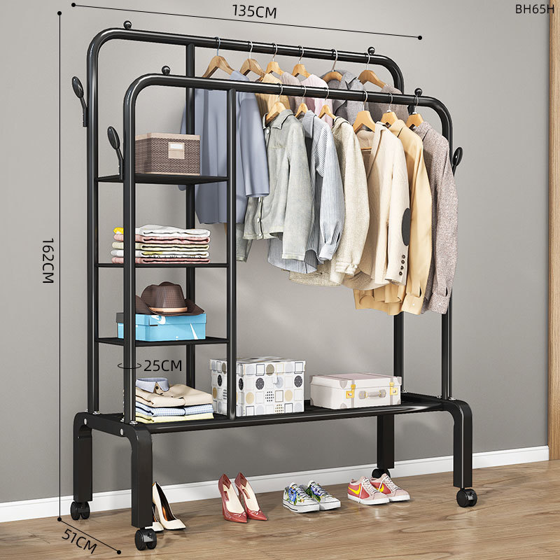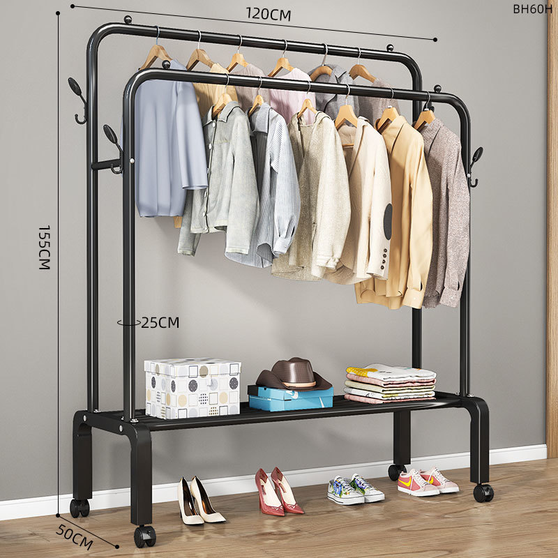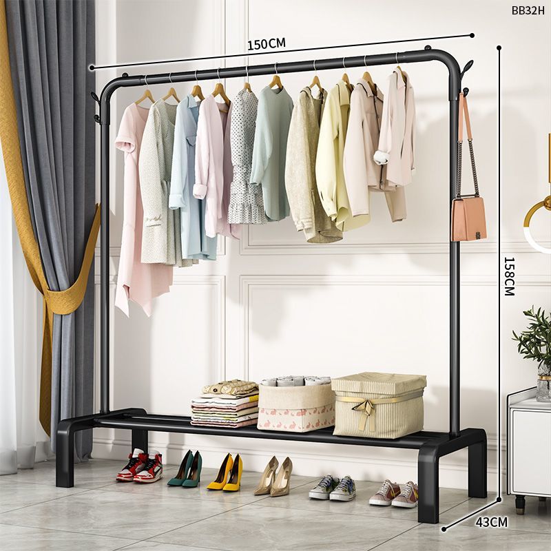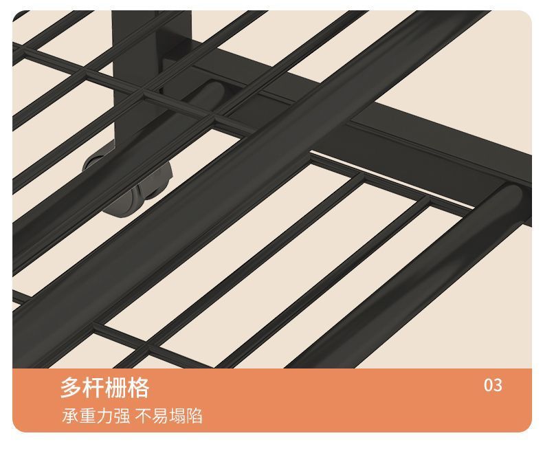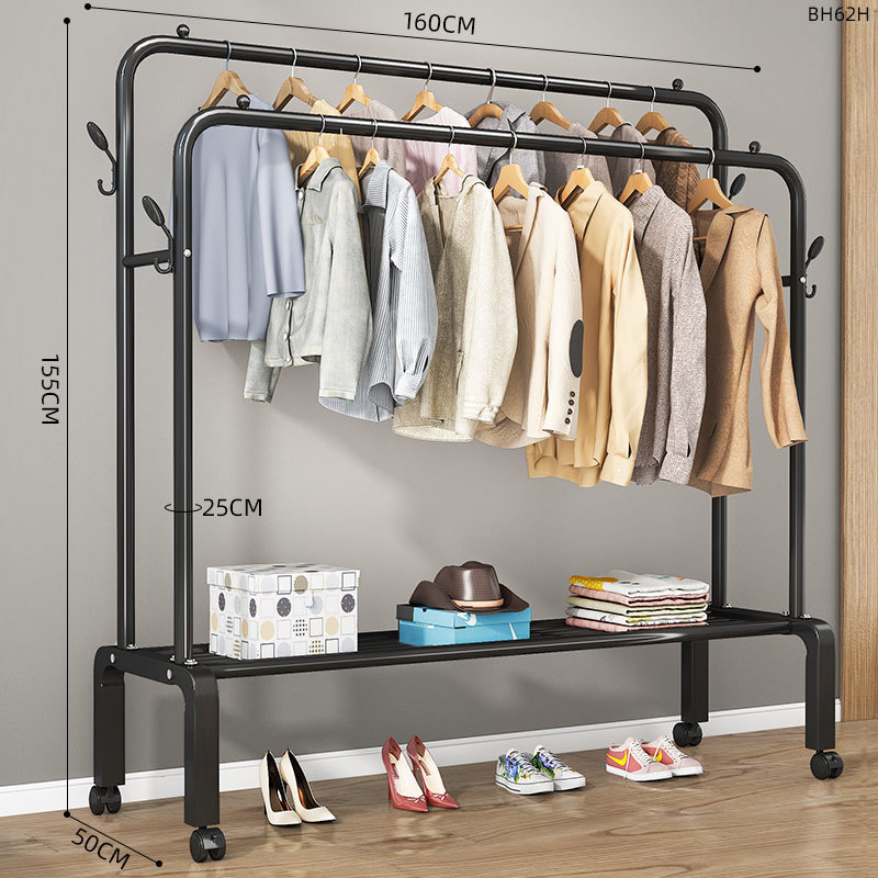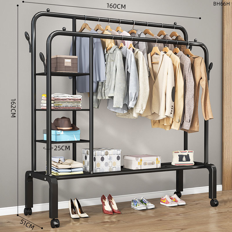 • 160cm [블랙] 싱글 수납선반 + 후크 + 휠