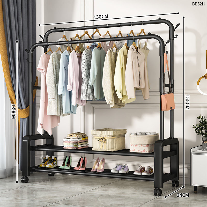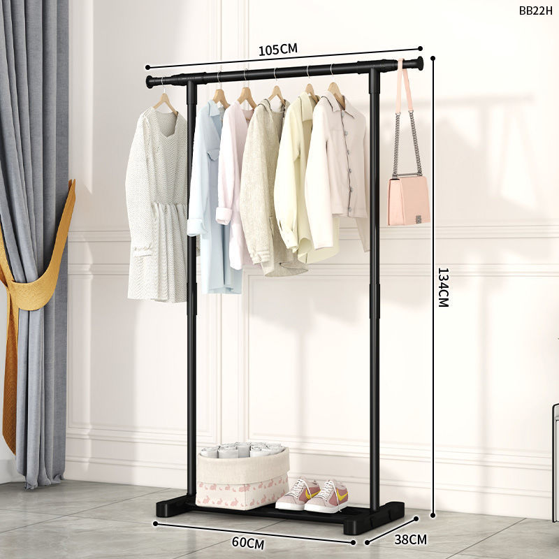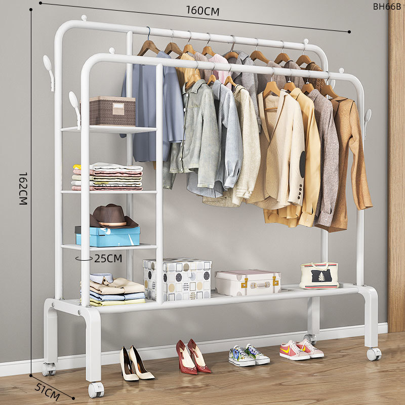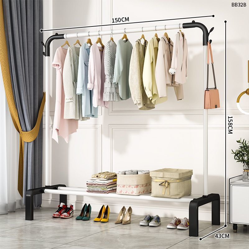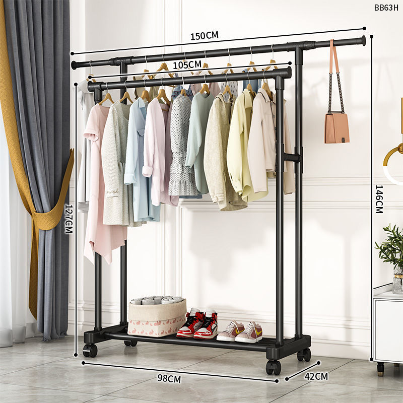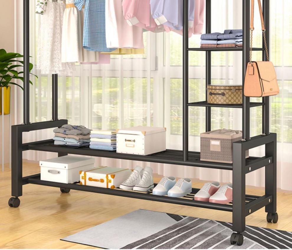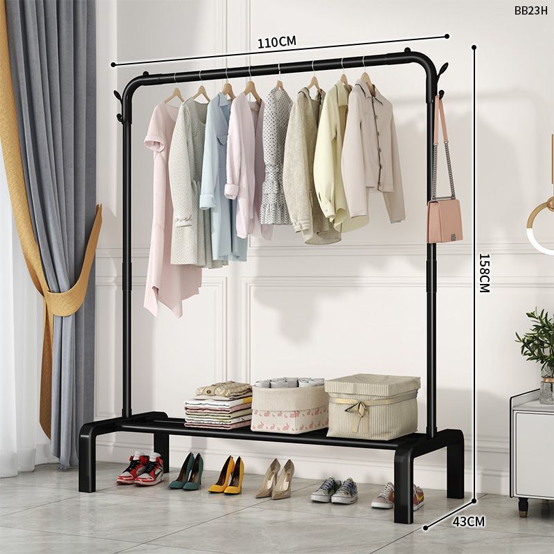 • 160cm [블랙] 싱글 수납선반 + 후크 + 휠