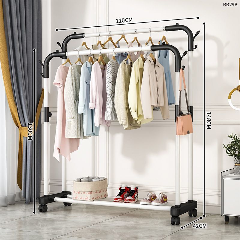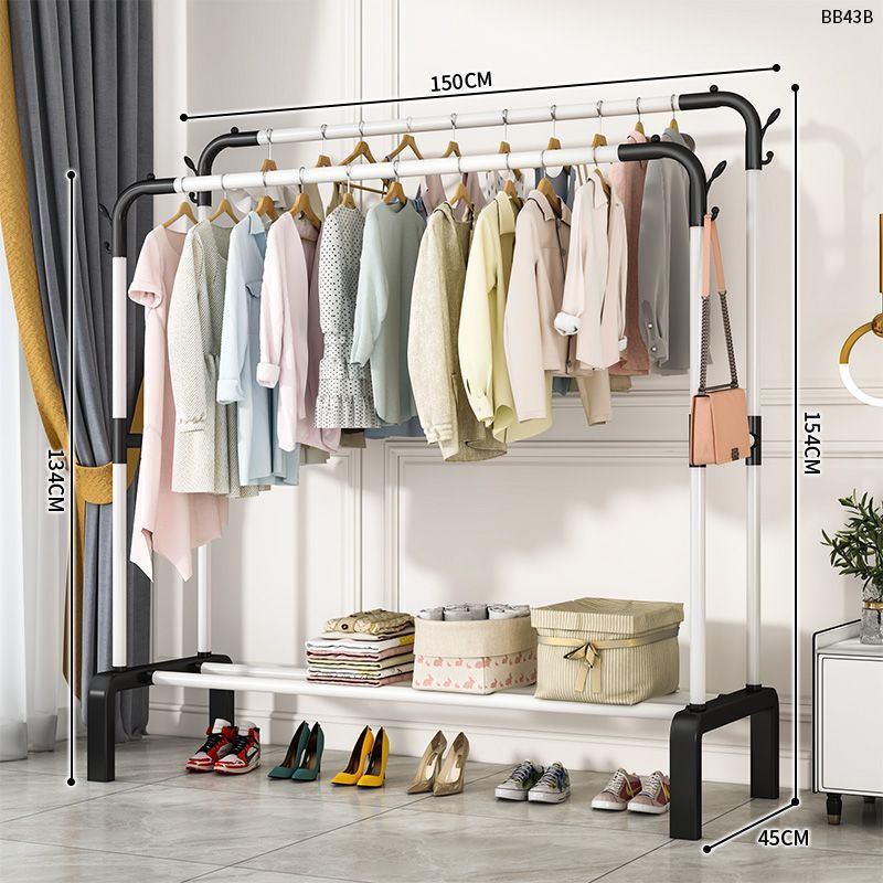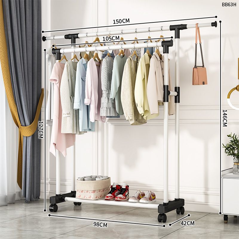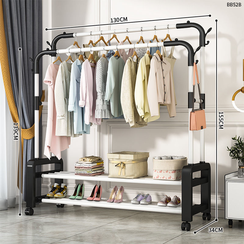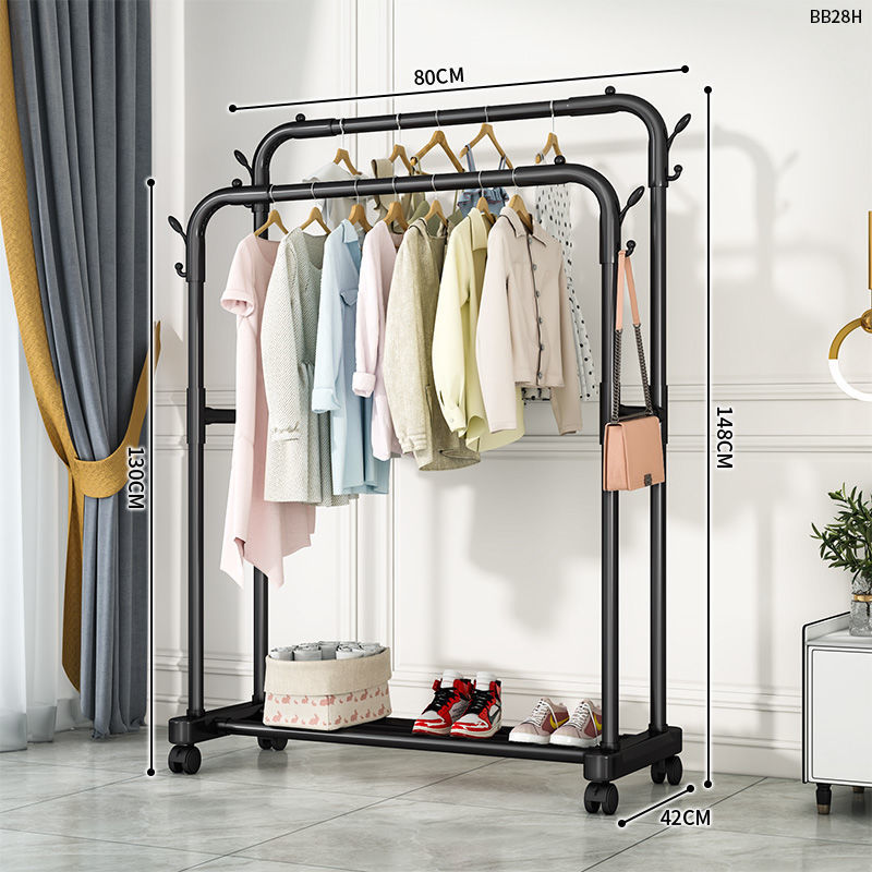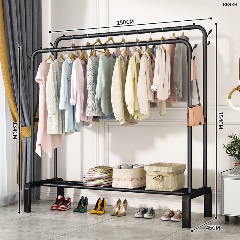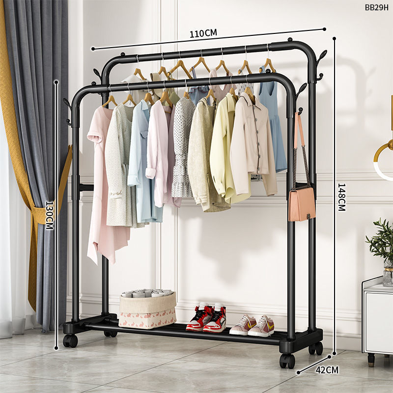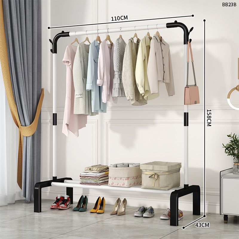 • 160cm [블랙] 싱글 수납선반 + 후크 + 휠