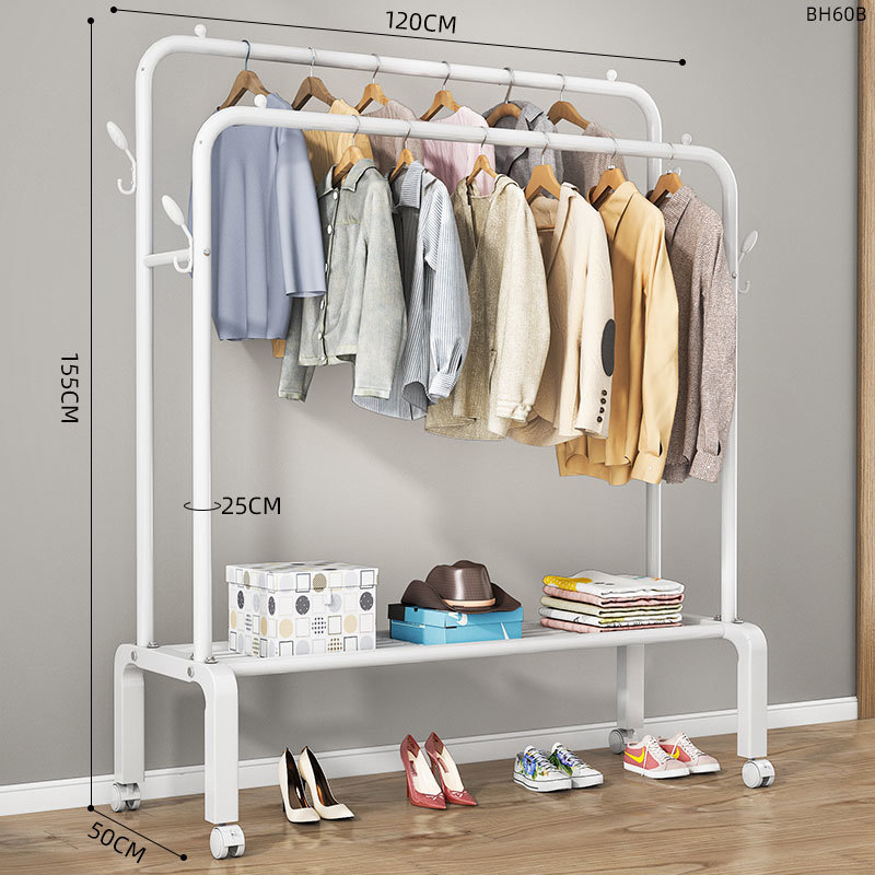 • 120cm [화이트] 싱글수납선반 + 후크 + 휠