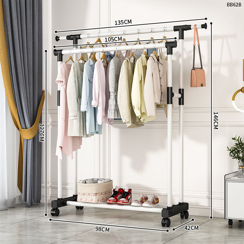• 135cm [화이트] 2단 수납망 + 바퀴