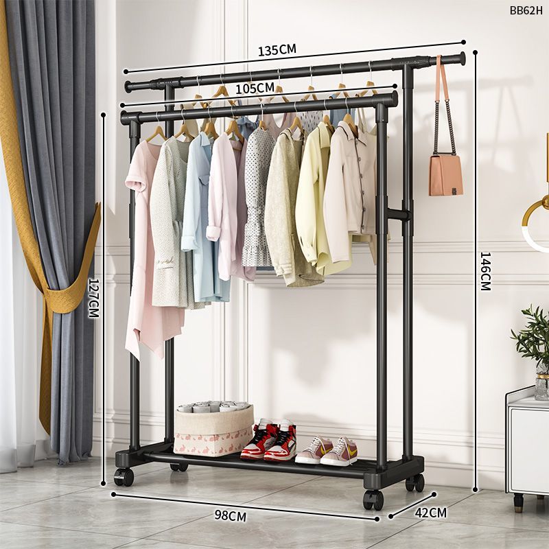 • 135cm [블랙] 2단 수납망 + 바퀴