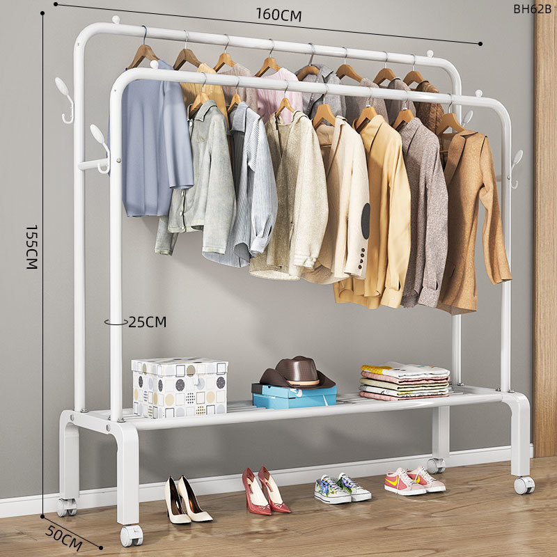 • 160cm [화이트] 싱글 수납선반 + 후크 + 휠