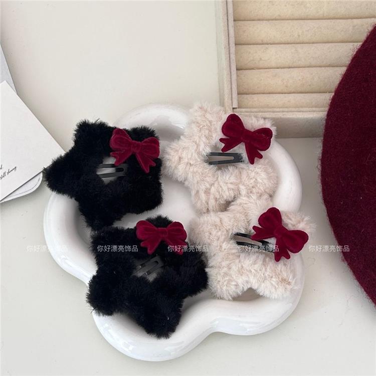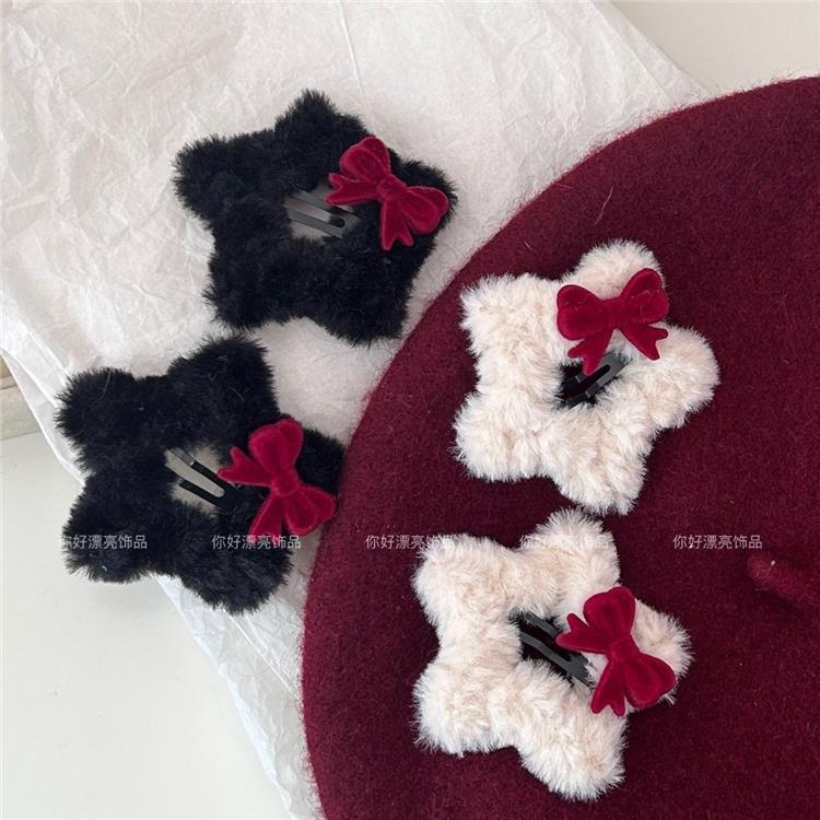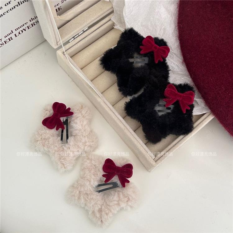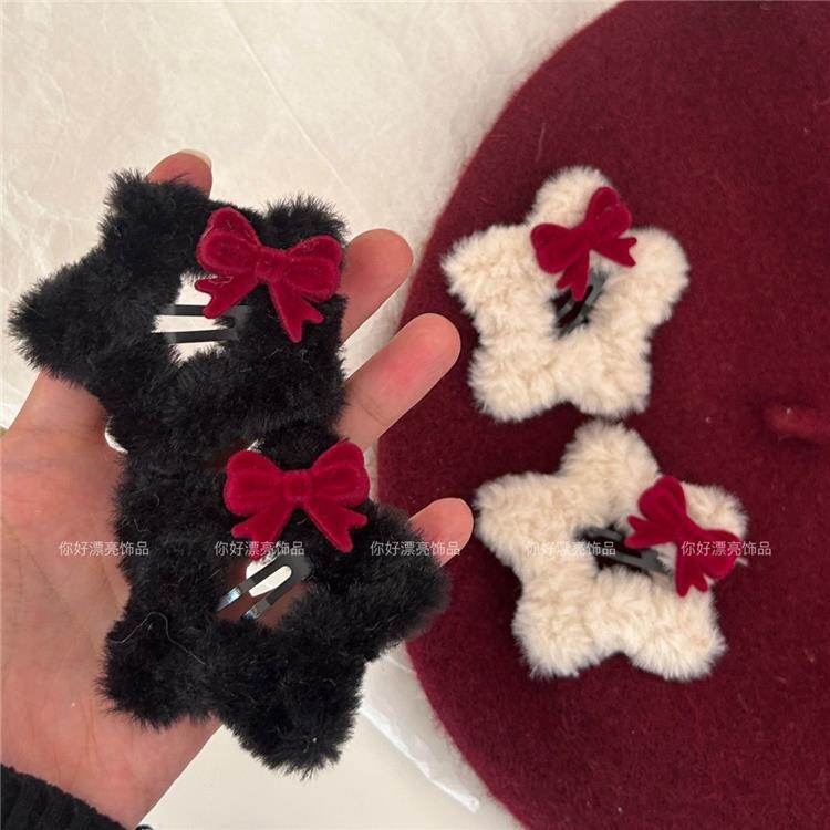 니치 플러시 파이브 스타 BB 클립 2024 깨진 헤어핀 사이드 심플 소녀 헤어 액세서리 올매치 스위트 소녀 절묘한 클립스토어 가기