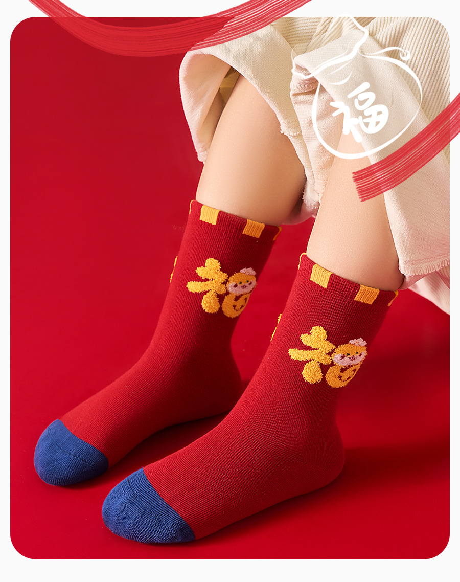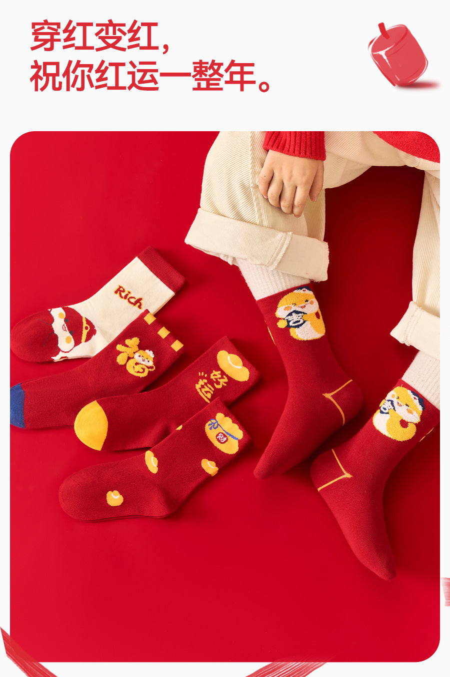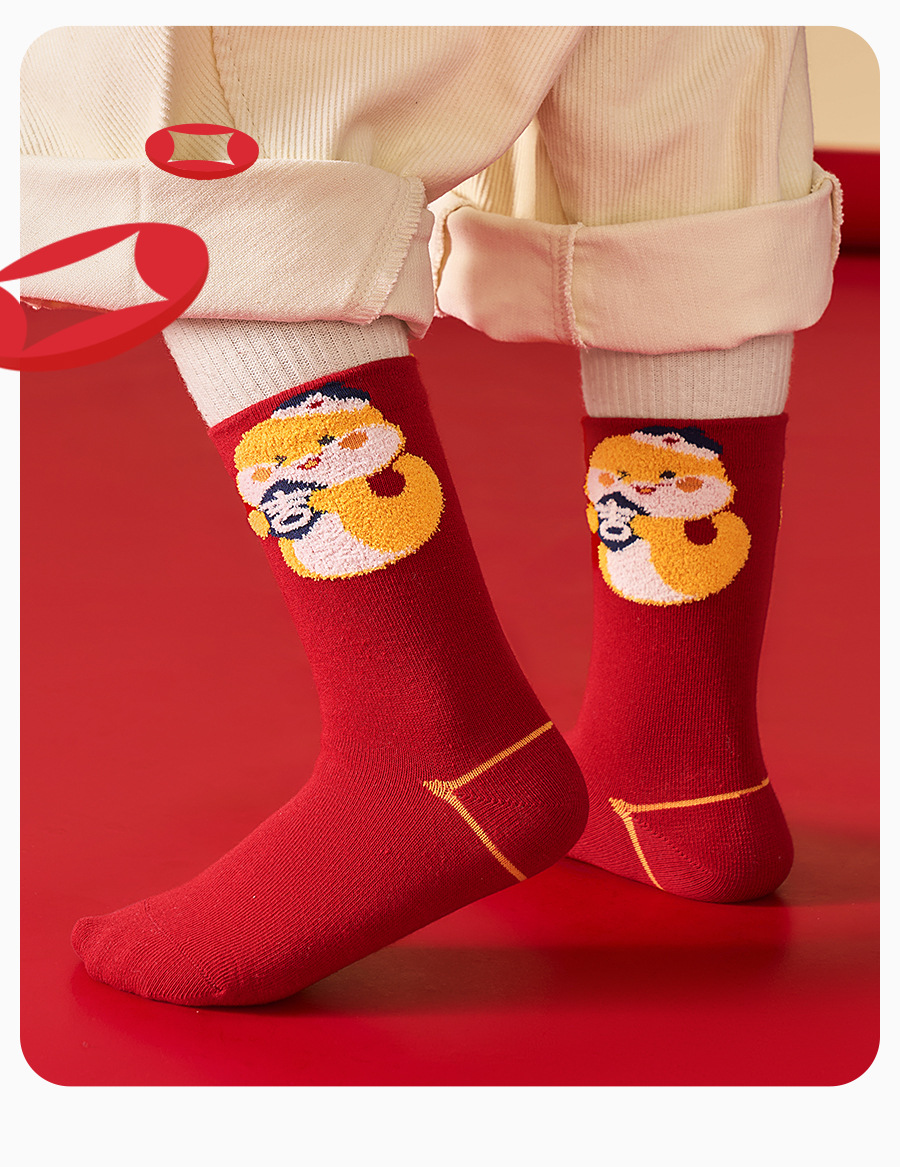 어린이 새해 빨간 양말 소년 겨울 클래스 N 중간 길이 양말 큰 어린이 소년 벤 밍니 레드 긴 길이 면 양말