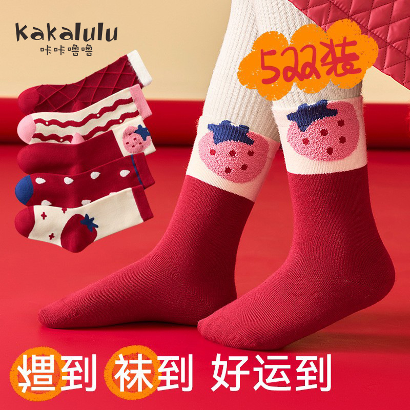 어린이 새해 빨간 양말 남아 겨울 A급 중목 양말 중대형 어린이 남아의 탄생연도 빨간색 긴 양말스토어 가기