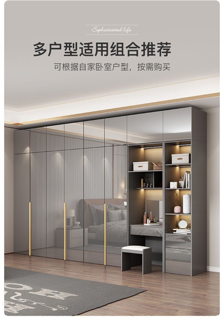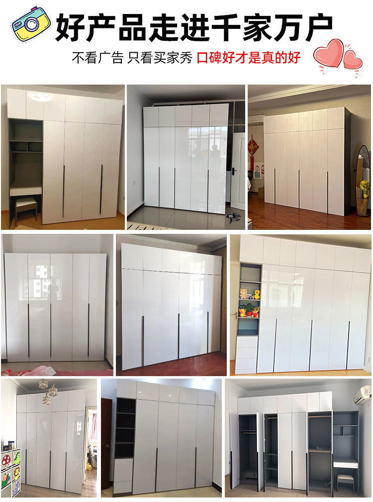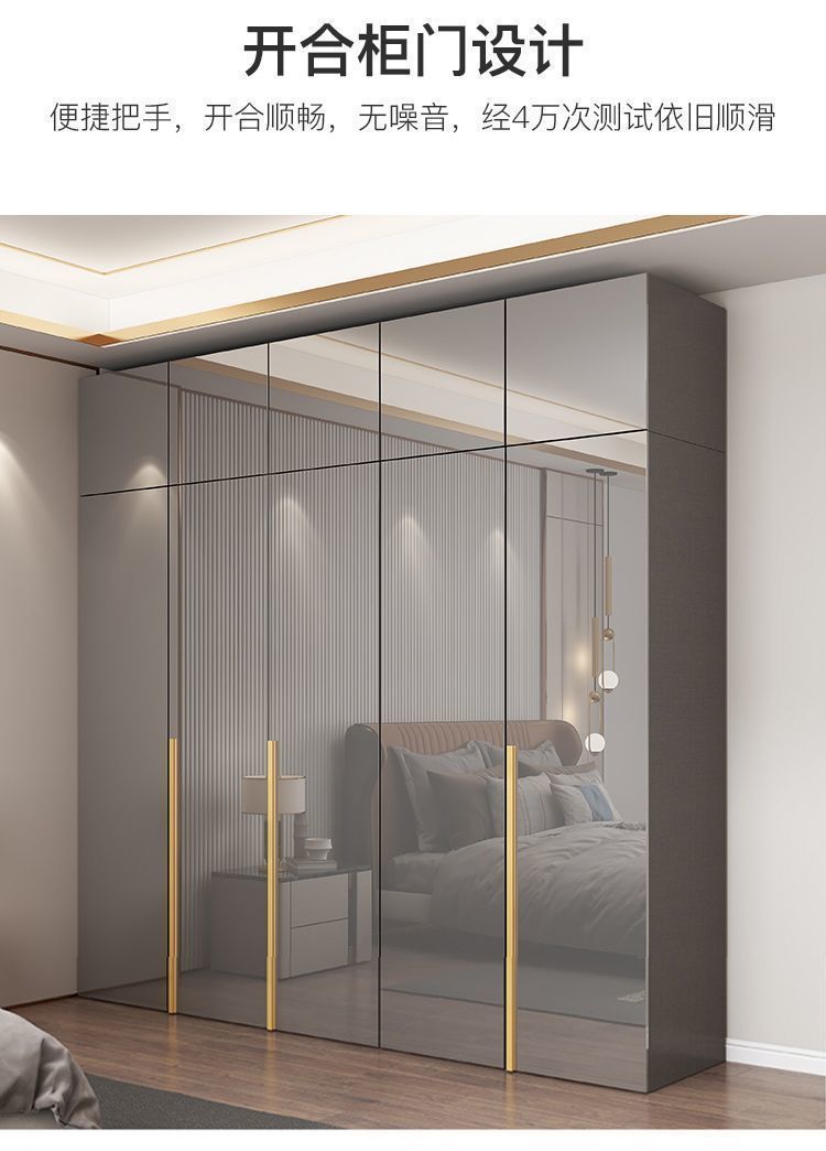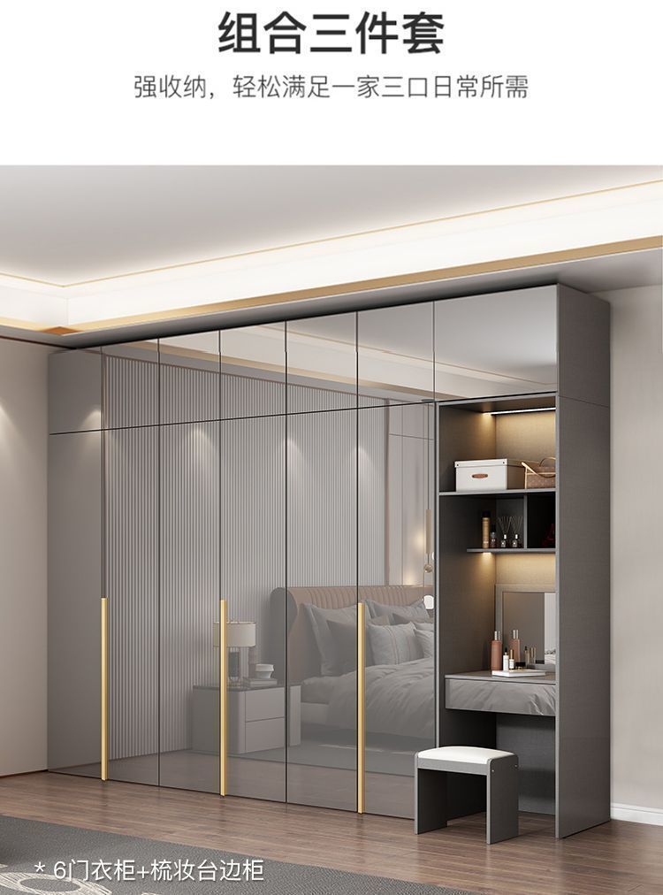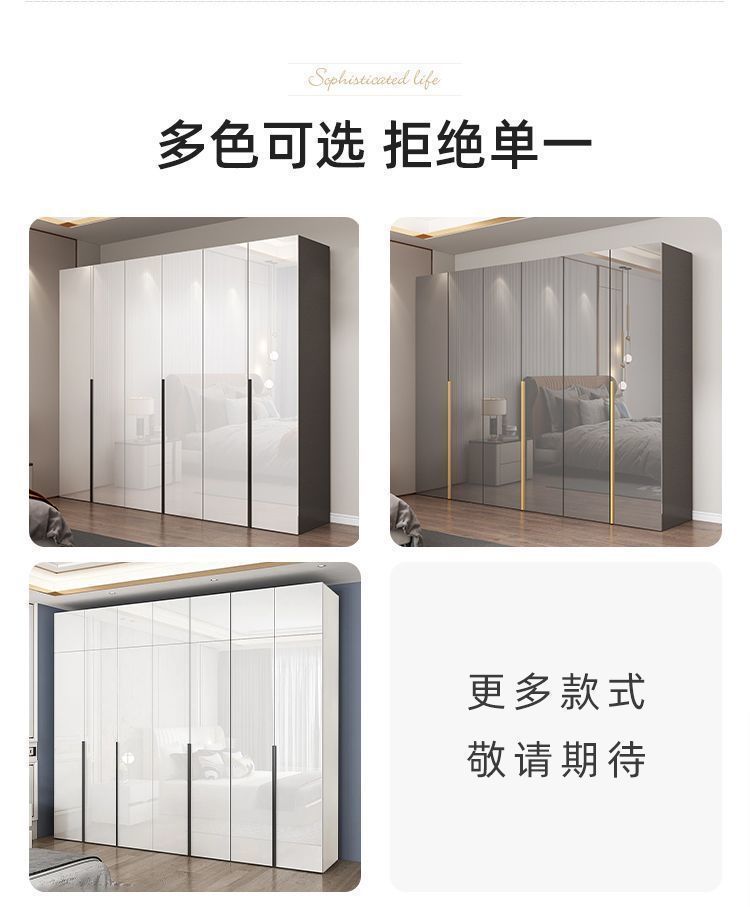 마스터 침실 빛 고급 옷장 PET 고광택 4 6 8 문 옷장 나무 현대 간단한 가정 침실 캐비닛