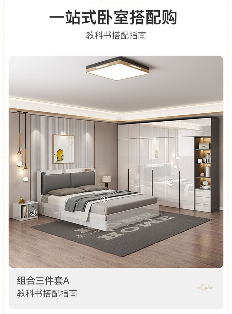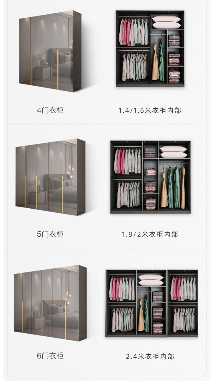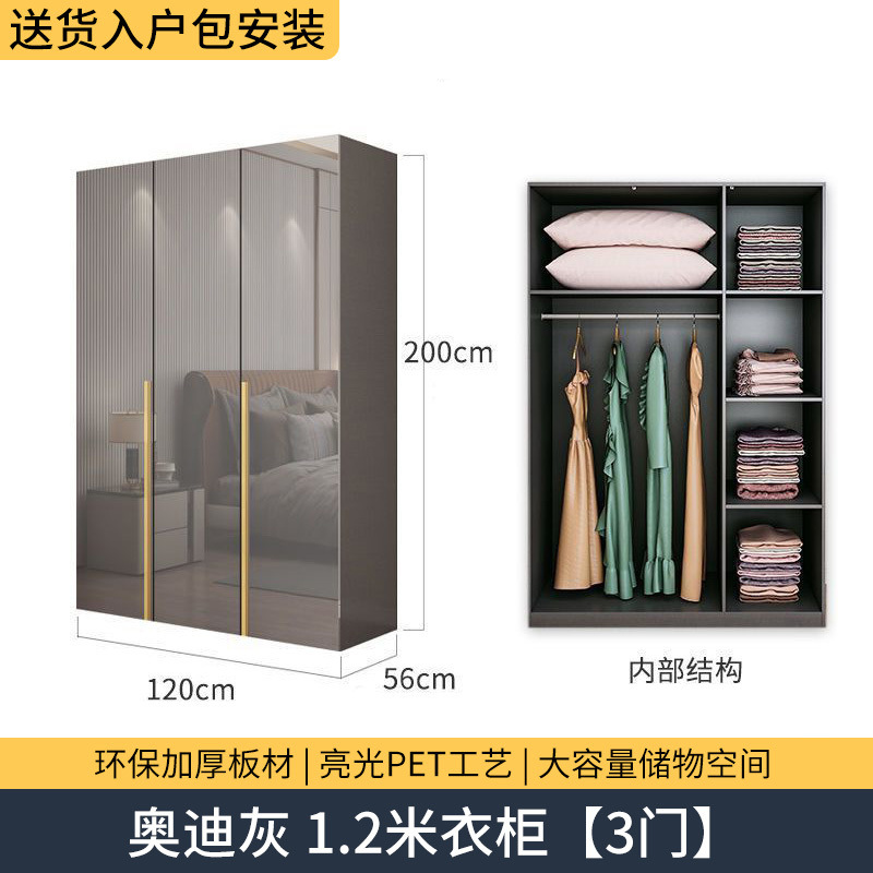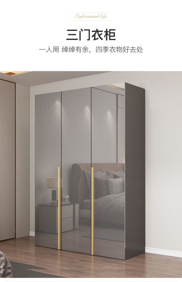 마스터 침실 빛 고급 옷장 PET 고광택 4 6 8 문 옷장 나무 현대 간단한 가정 침실 캐비닛