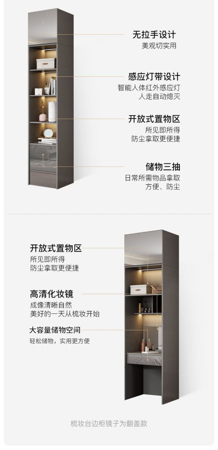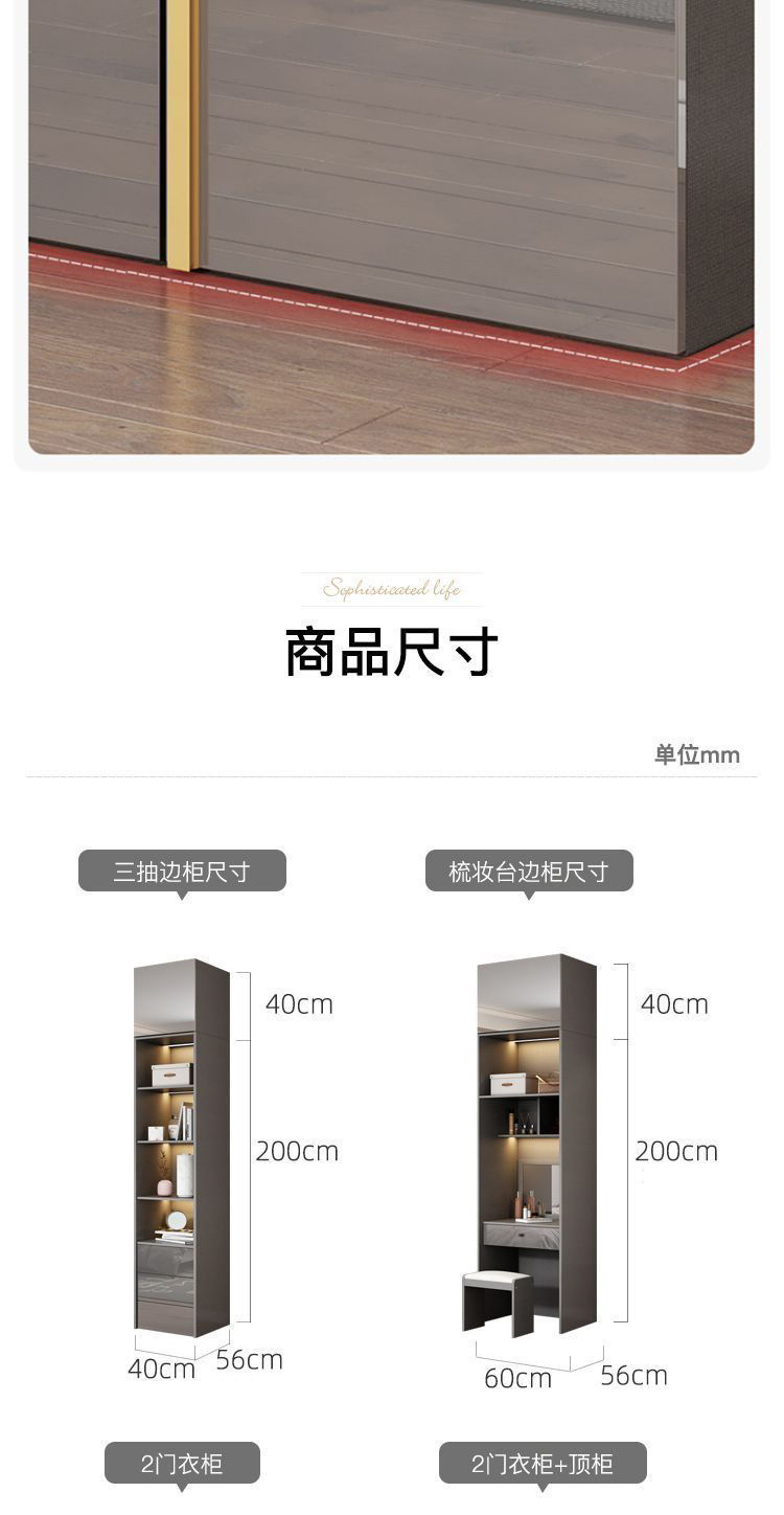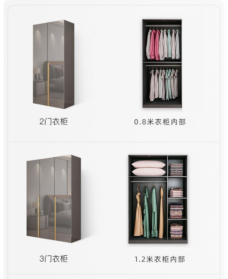 • 아우디 그레이 - 0.8m 옷장 + 상단 캐비닛 + 측면 캐비닛 [2 도어]