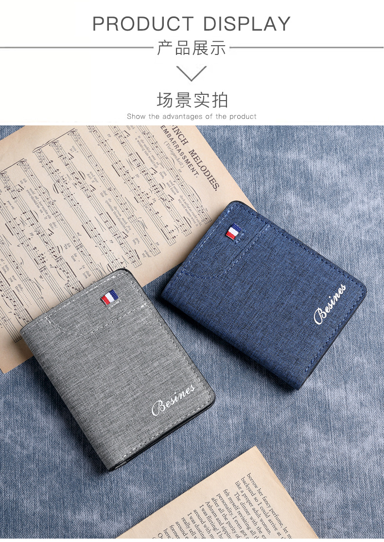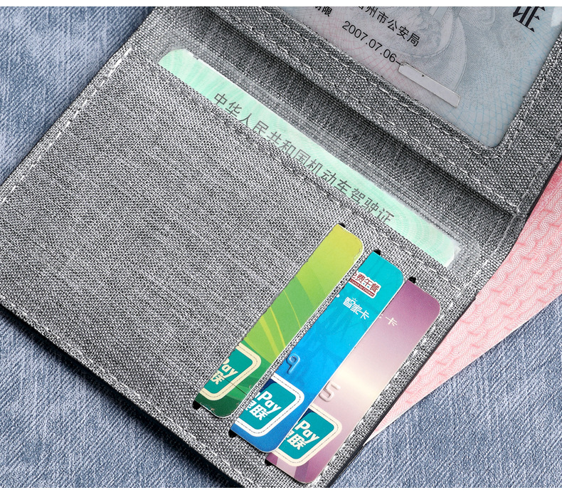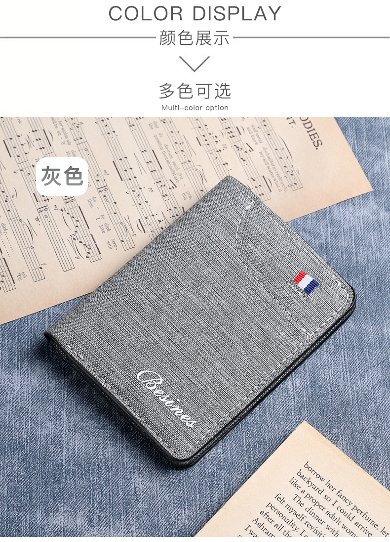 캔버스 울트라 얇은 짧은 남자 지갑 간단한 운전 면허증 카드 홀더 원피스 학생 간단한 남자 얇은 지갑스토어 가기