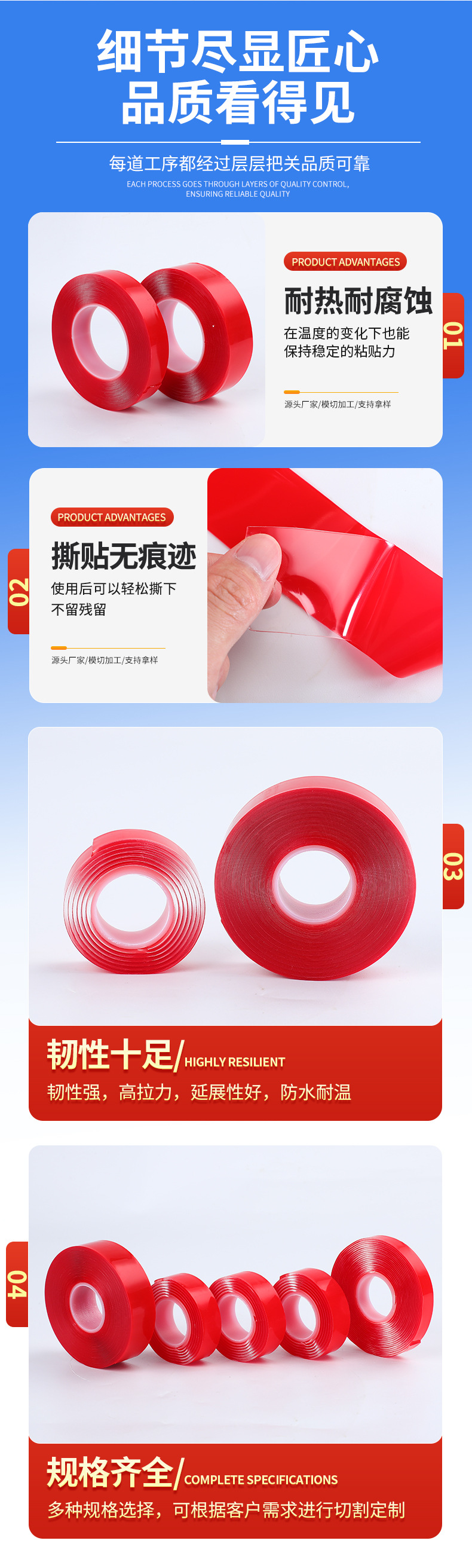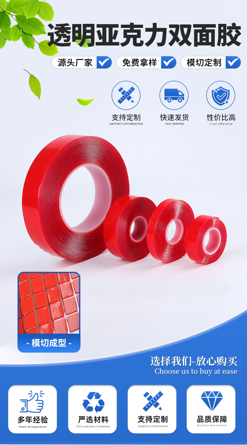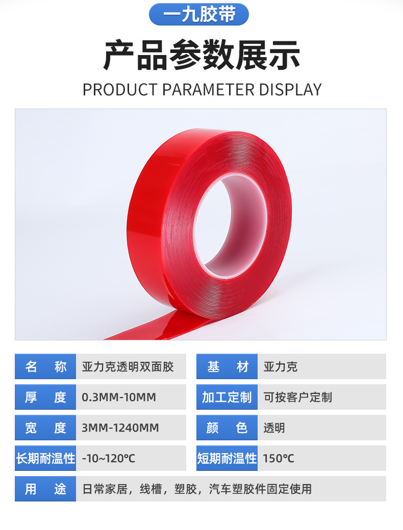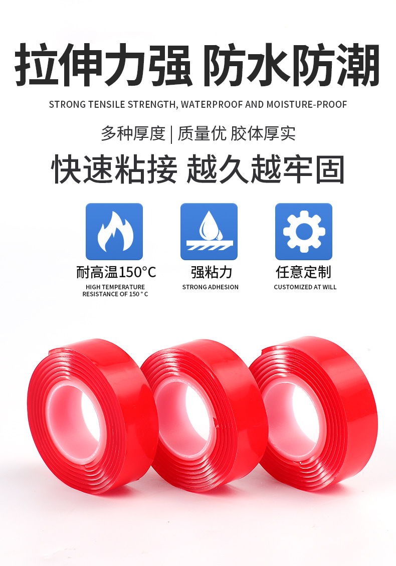 빨간색 필름 투명 아크릴 양면 테이프 강력한 고점도 흔적 없는 나노 양면 테이프 자동차 방수 테이프스토어 가기