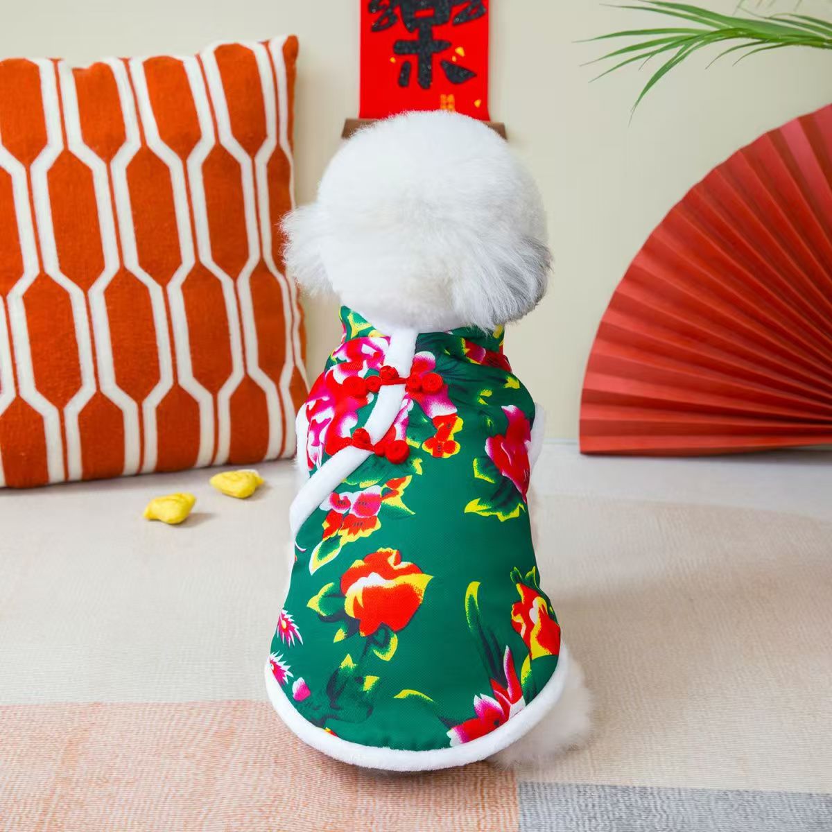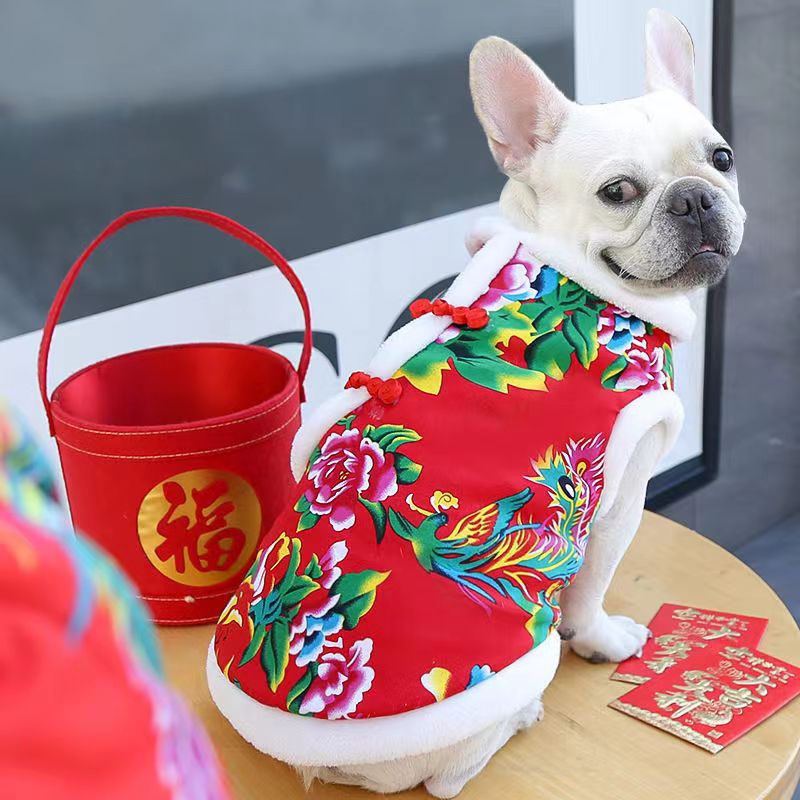 개 고양이 가을과 겨울 조끼 모자 북동쪽 큰 꽃 코트 면 두꺼운 테디 공급 Fadou Corgi 애완 동물 옷스토어 가기