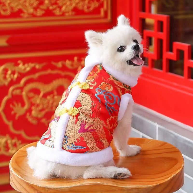 개 고양이 가을과 겨울 조끼 모자 북동쪽 큰 꽃 코트 면 두꺼운 테디 공급 Fadou Corgi 애완 동물 옷