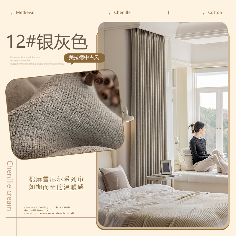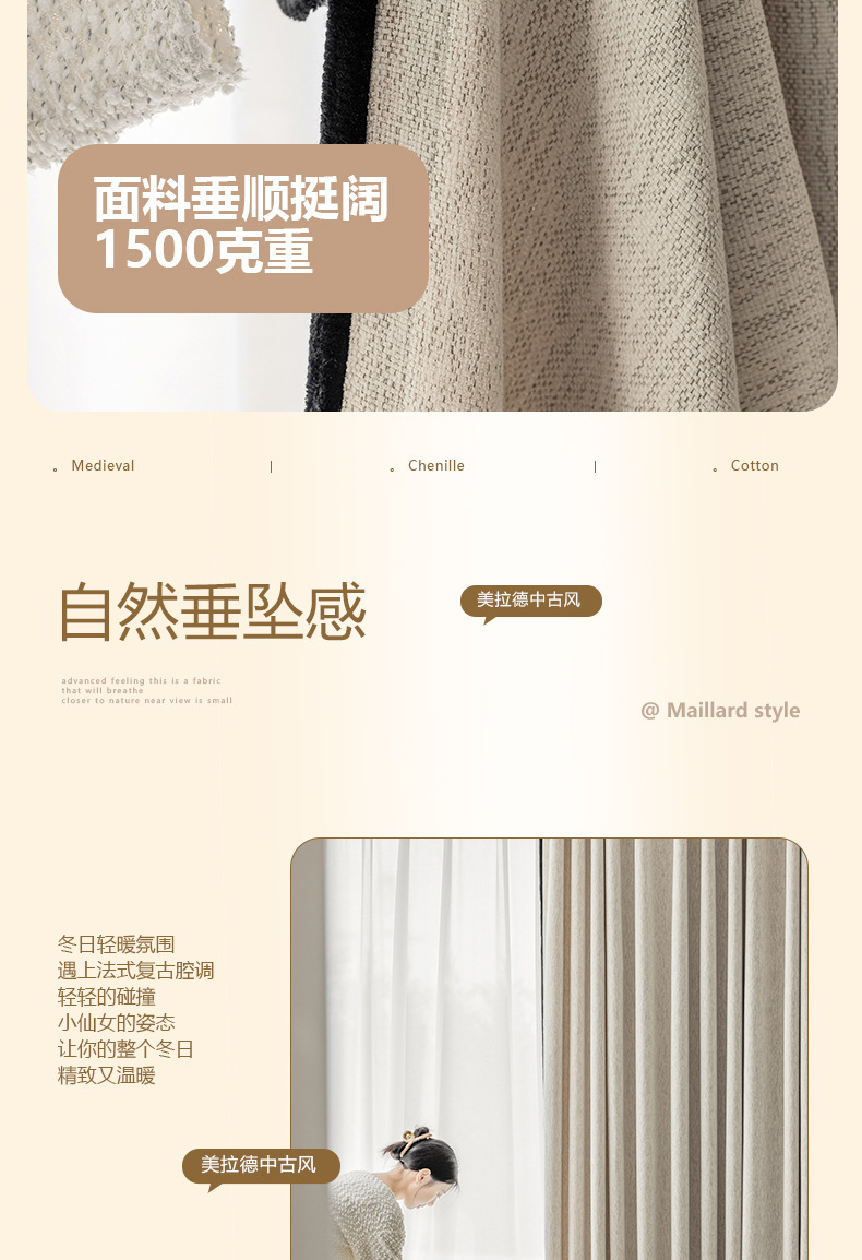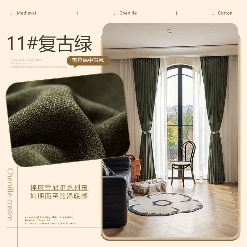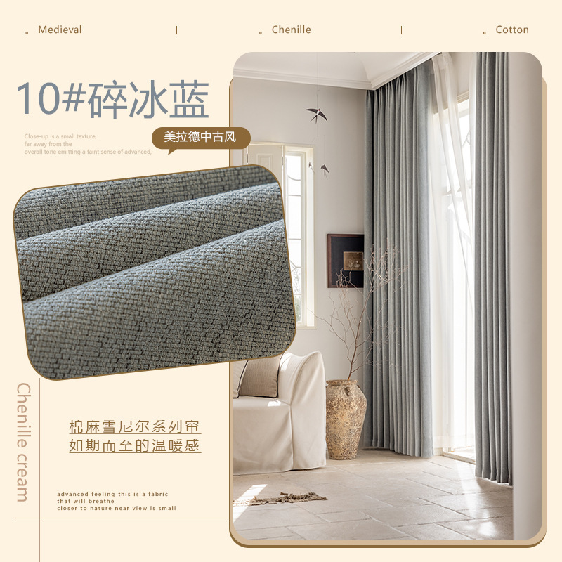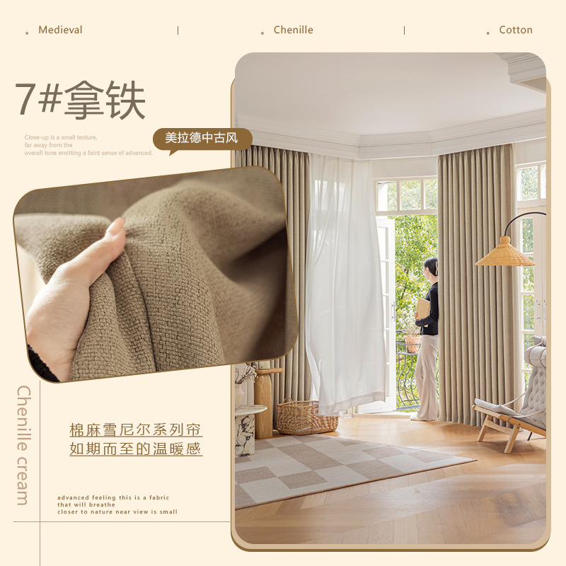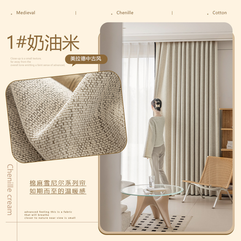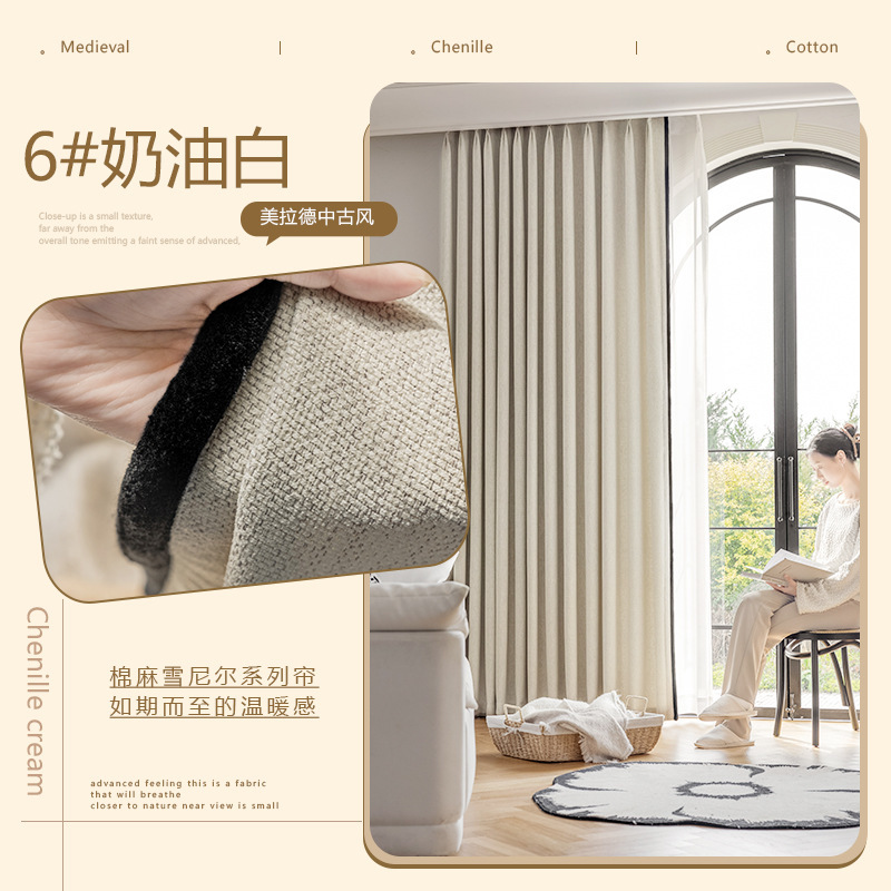 2024 새로운 프랑스 스타일 엔트리 럭셔리 Chenille 크림 벨벳 침실을위한 두꺼운 커튼 고급 쉐이싱 Keqiao스토어 가기