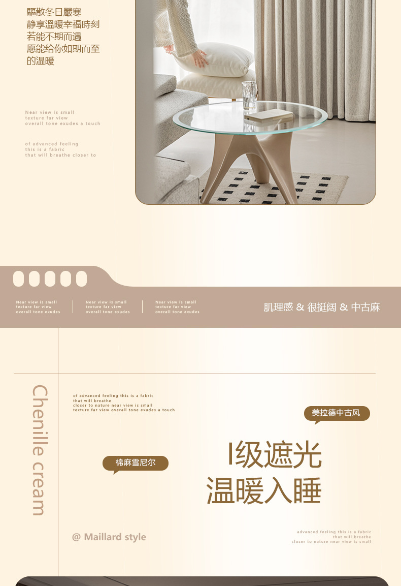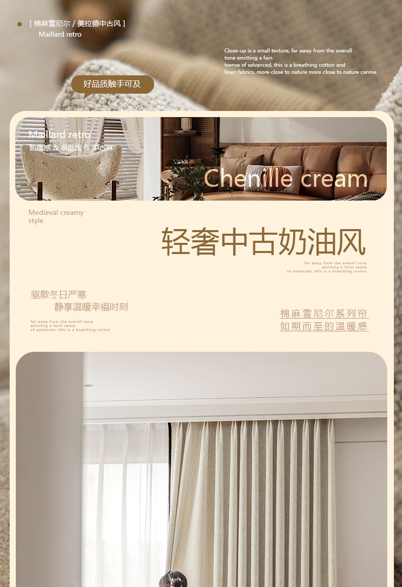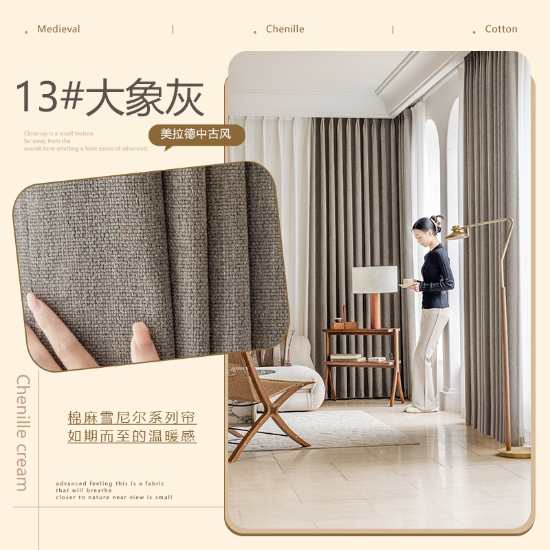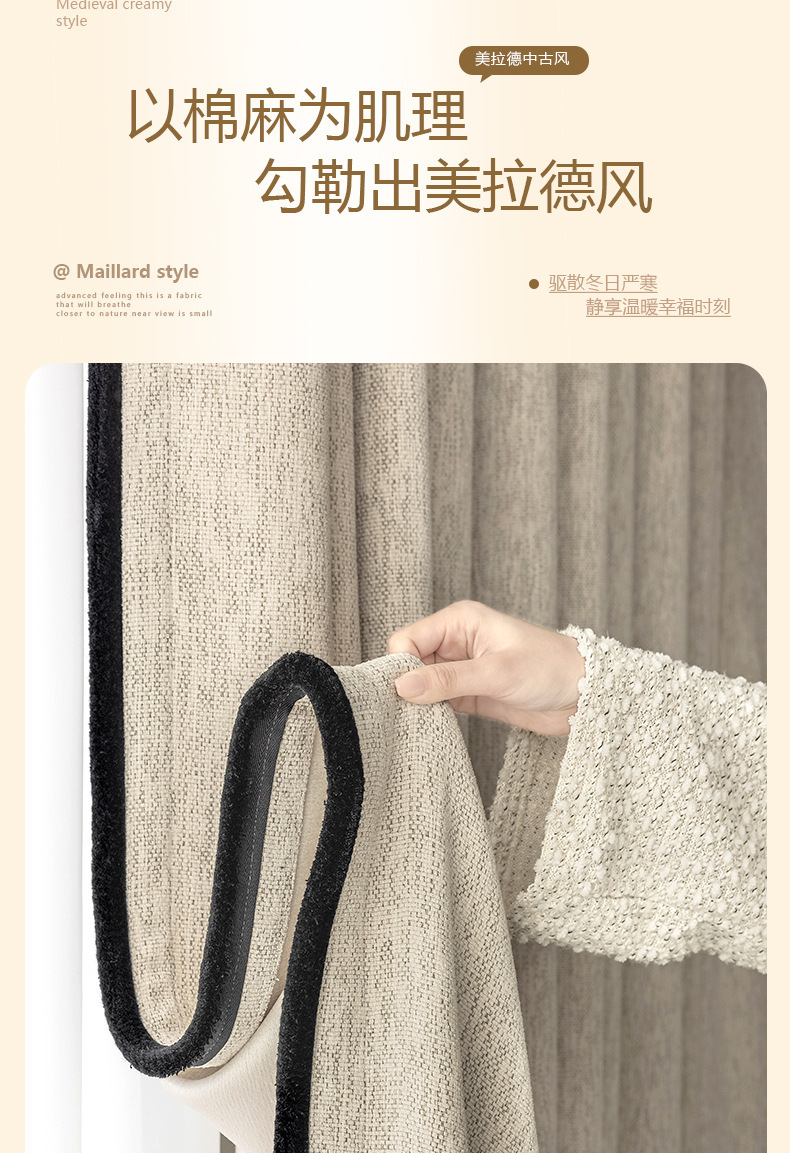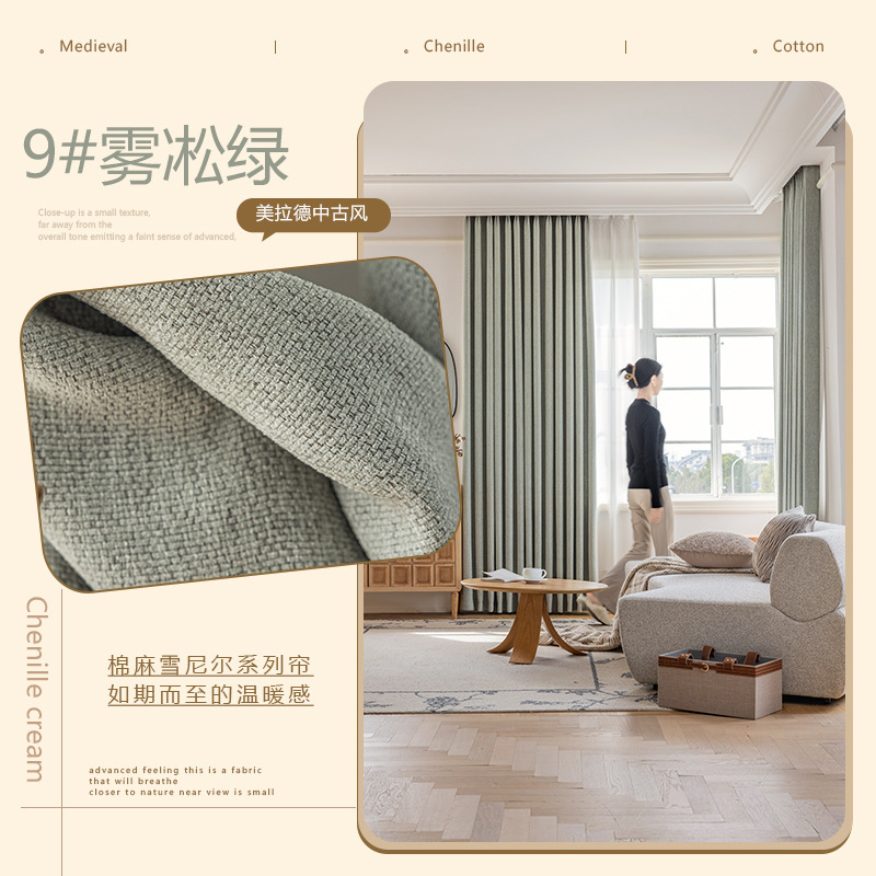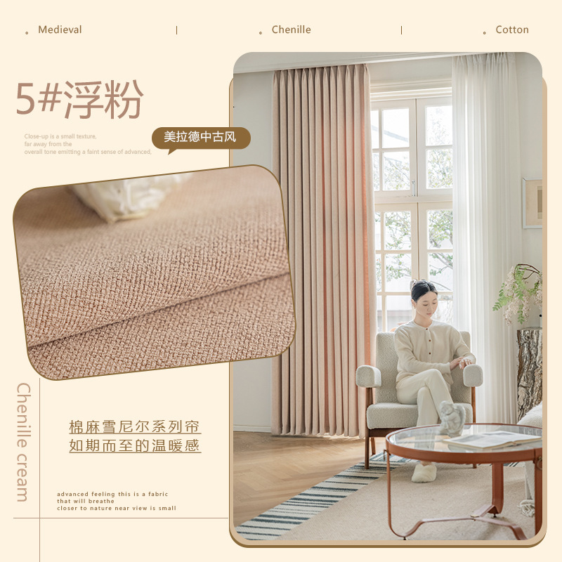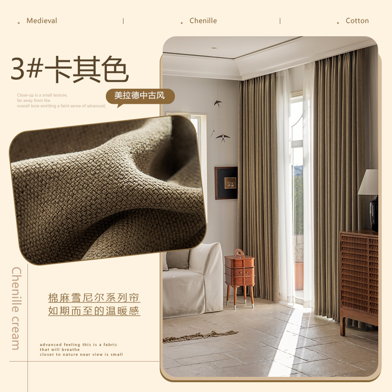 2024 새로운 프랑스 스타일 엔트리 럭셔리 Chenille 크림 벨벳 침실을위한 두꺼운 커튼 고급 쉐이싱 Keqiao스토어 가기
