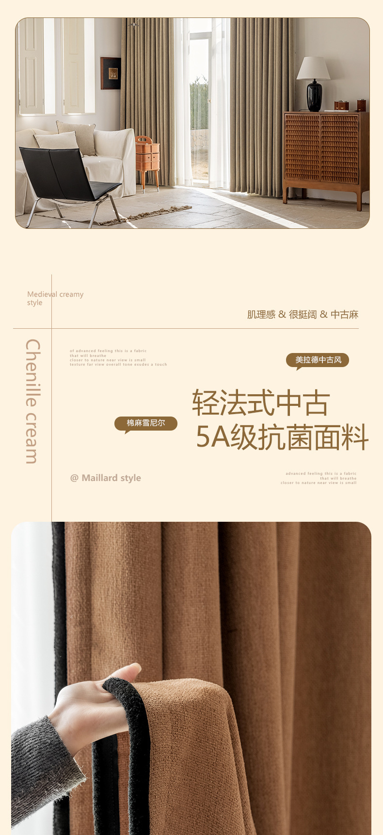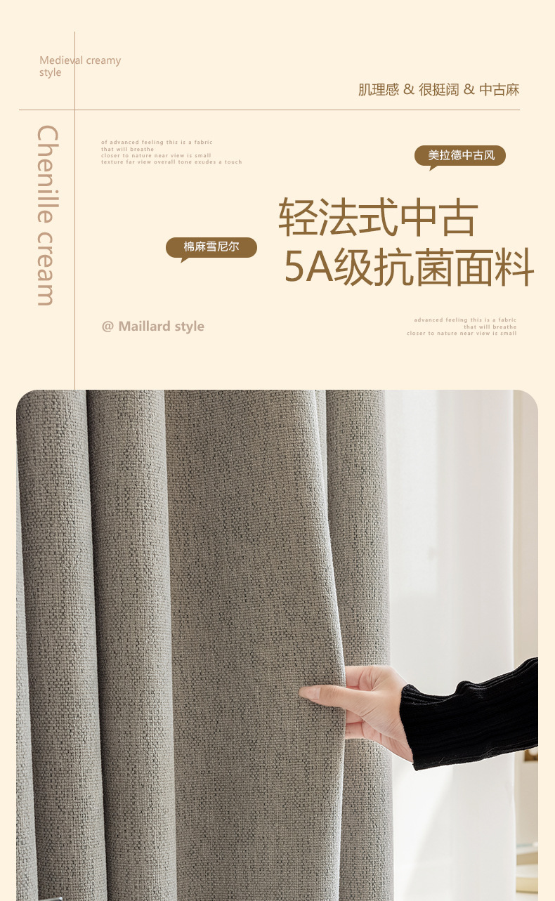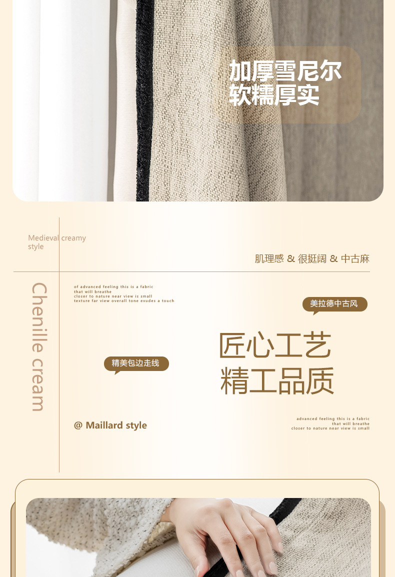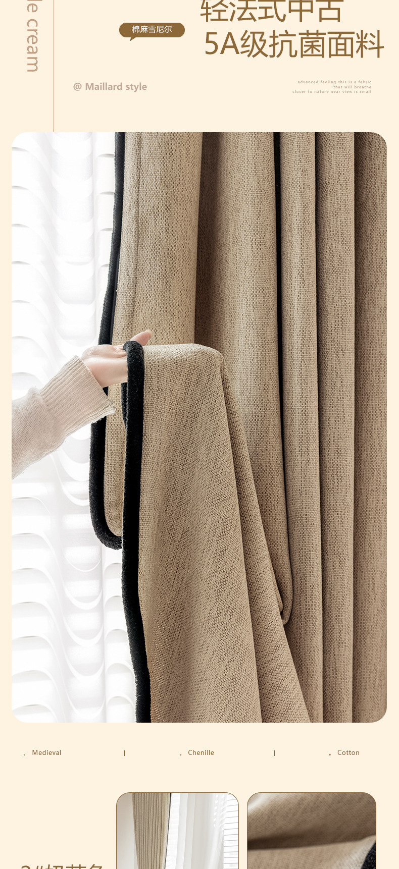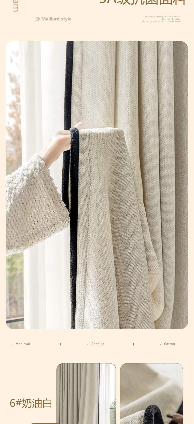 2024 새로운 프랑스 스타일 엔트리 럭셔리 Chenille 크림 벨벳 침실을위한 두꺼운 커튼 고급 쉐이싱 Keqiao