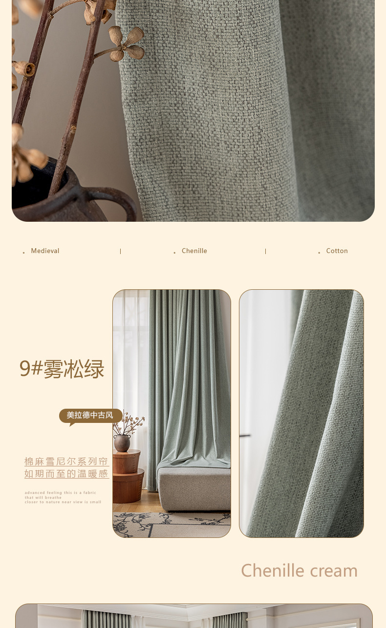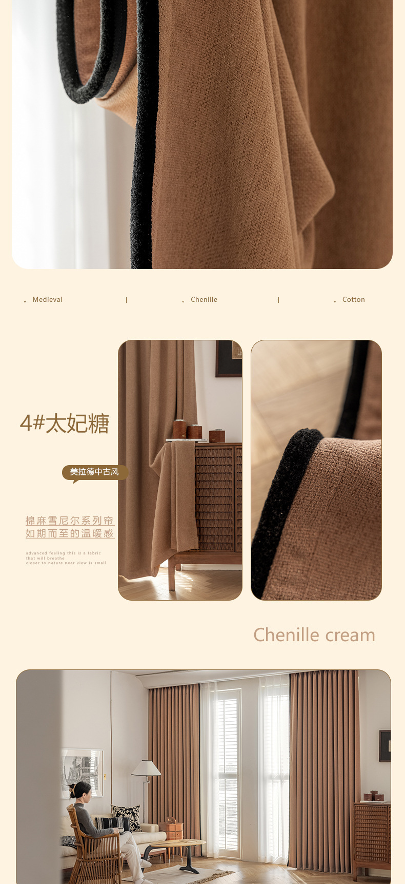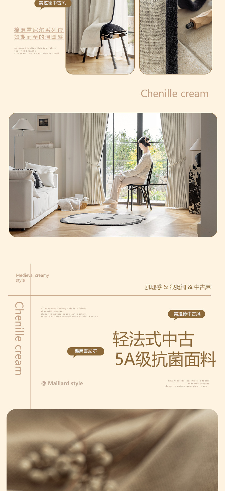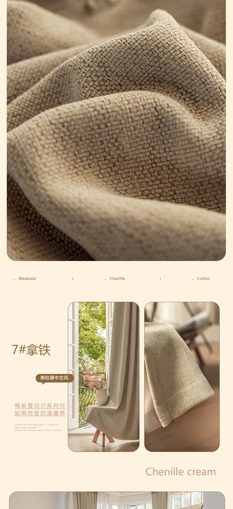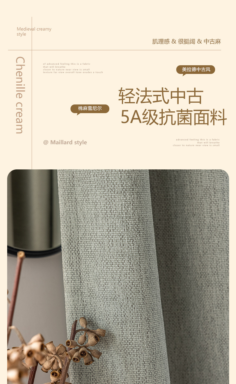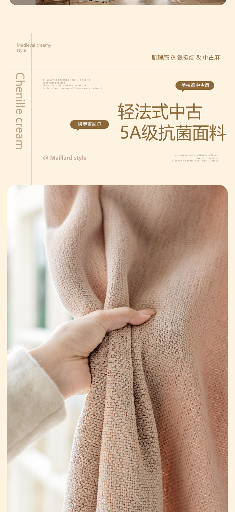 2024 새로운 프랑스 스타일 엔트리 럭셔리 Chenille 크림 벨벳 침실을위한 두꺼운 커튼 고급 쉐이싱 Keqiao