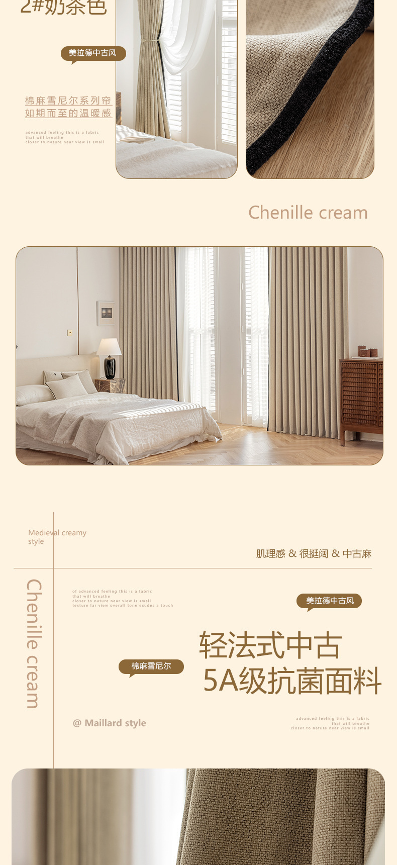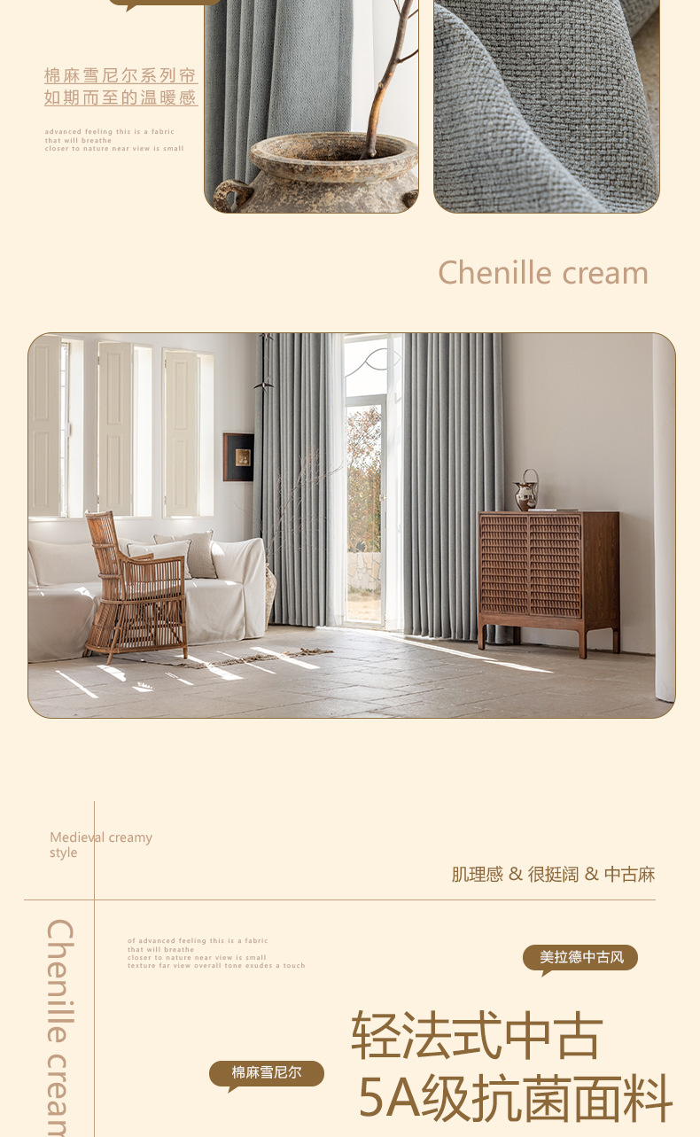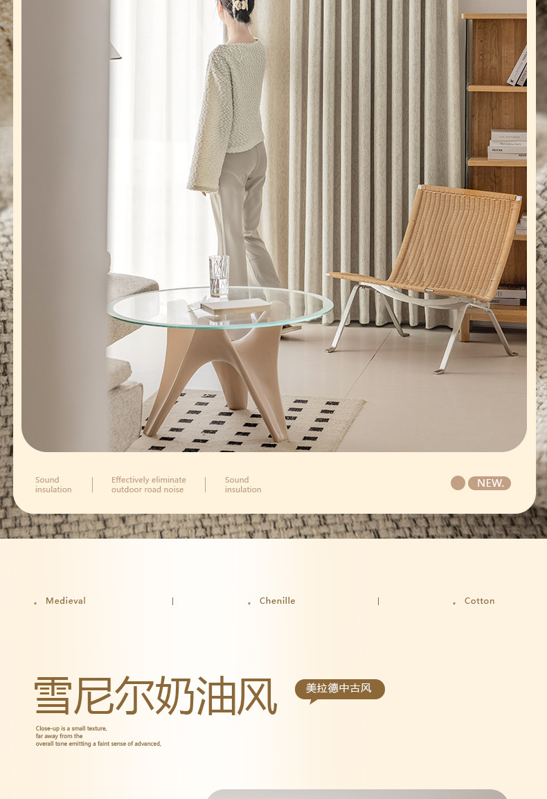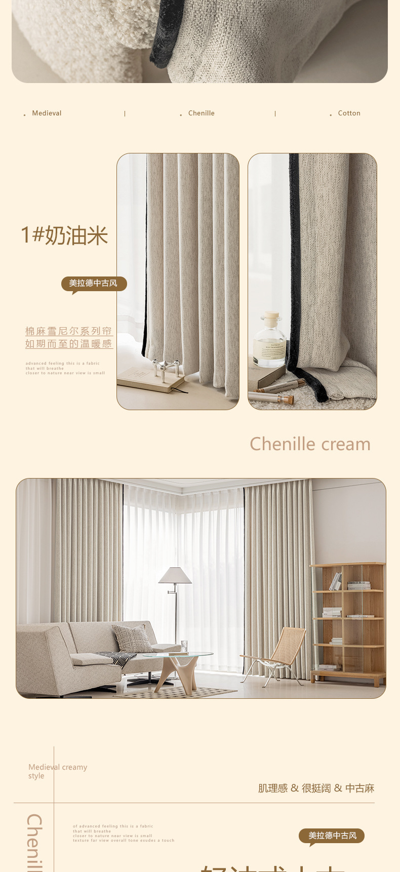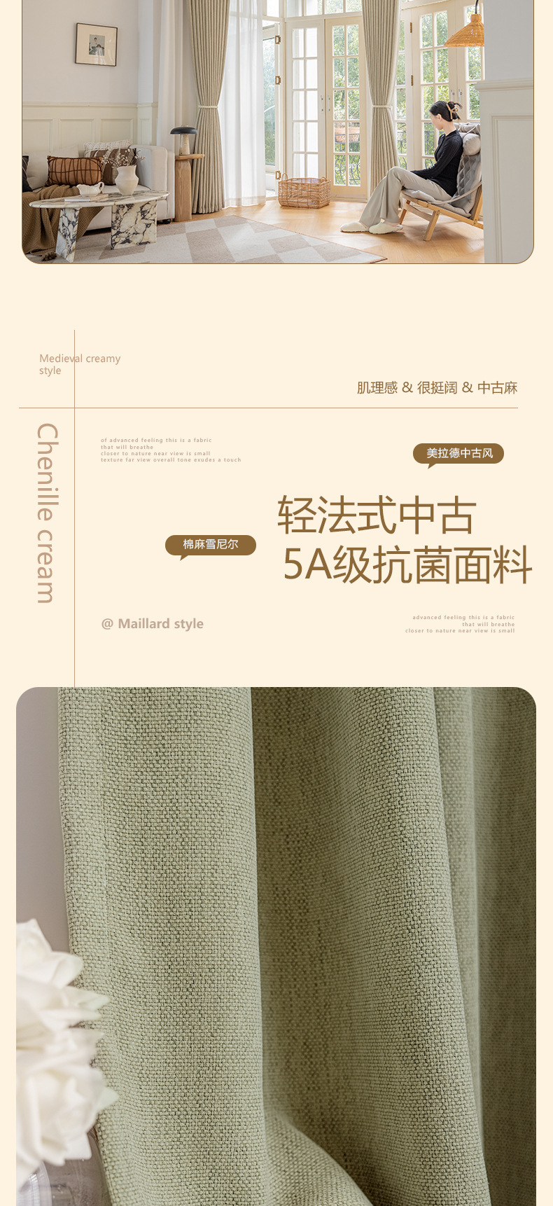 2024 새로운 프랑스 스타일 엔트리 럭셔리 Chenille 크림 벨벳 침실을위한 두꺼운 커튼 고급 쉐이싱 Keqiao