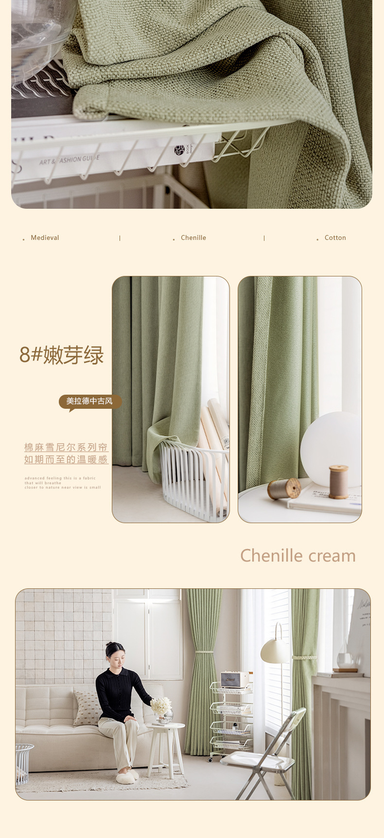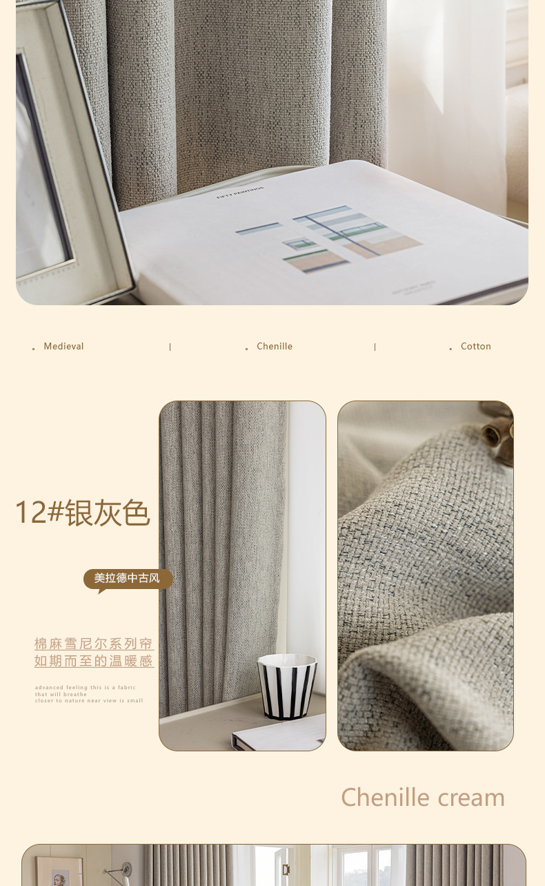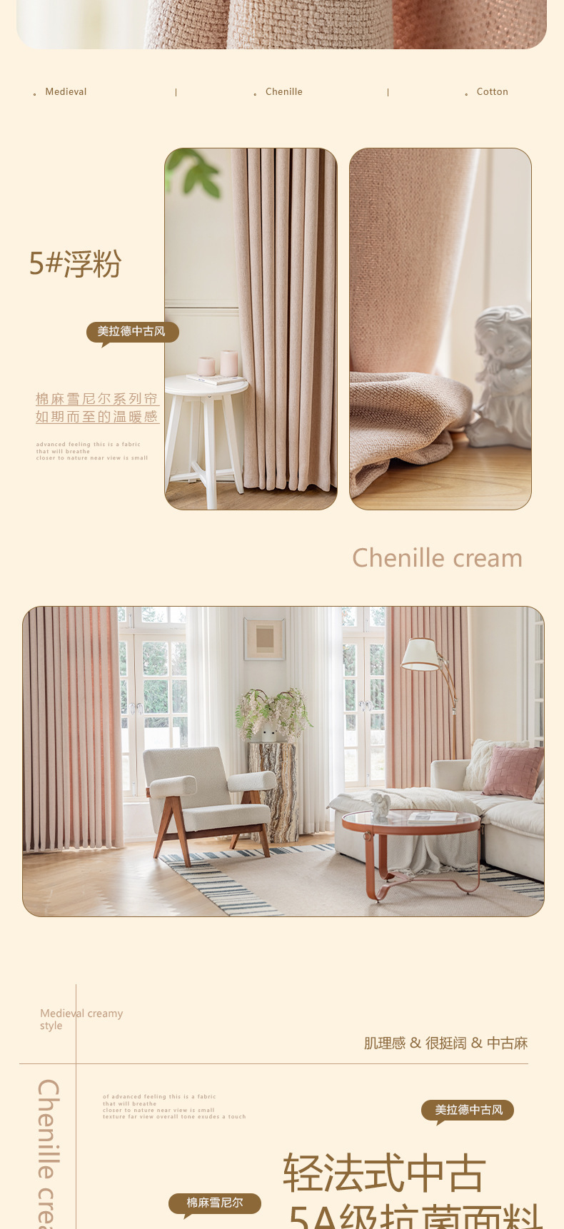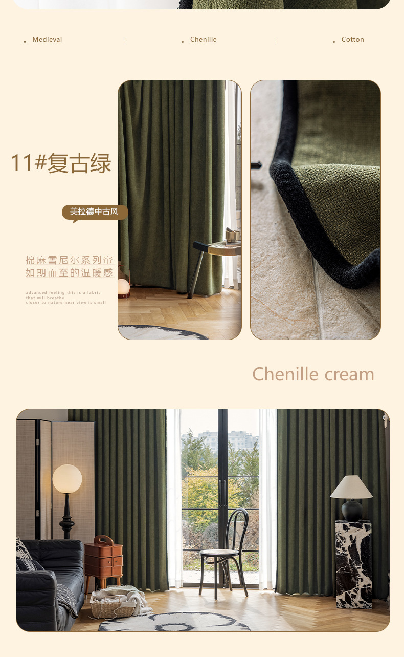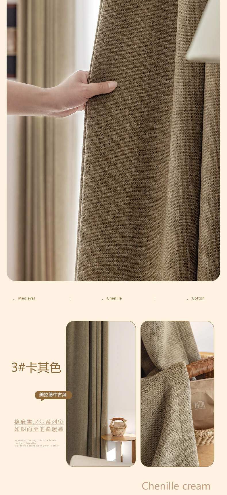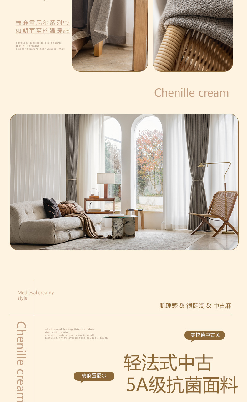 2024 새로운 프랑스 스타일 엔트리 럭셔리 Chenille 크림 벨벳 침실을위한 두꺼운 커튼 고급 쉐이싱 Keqiao