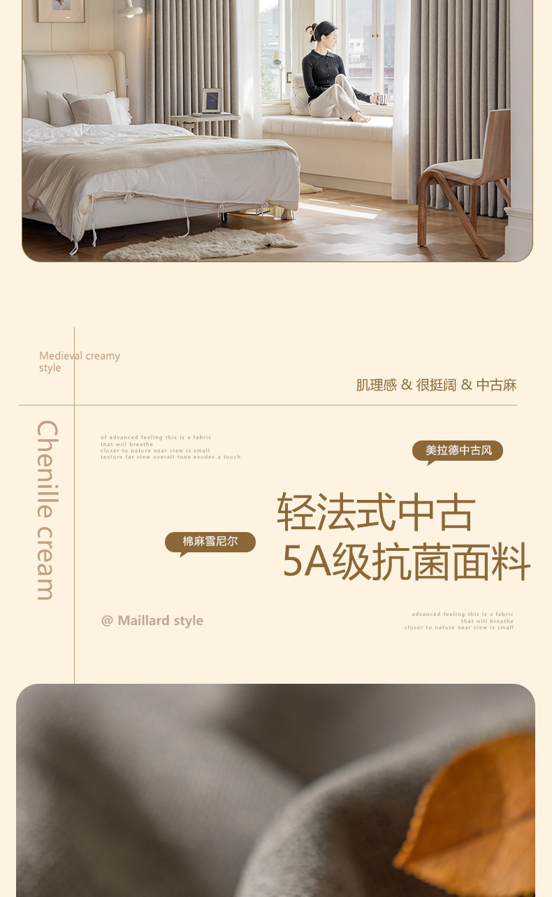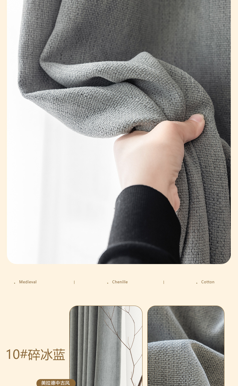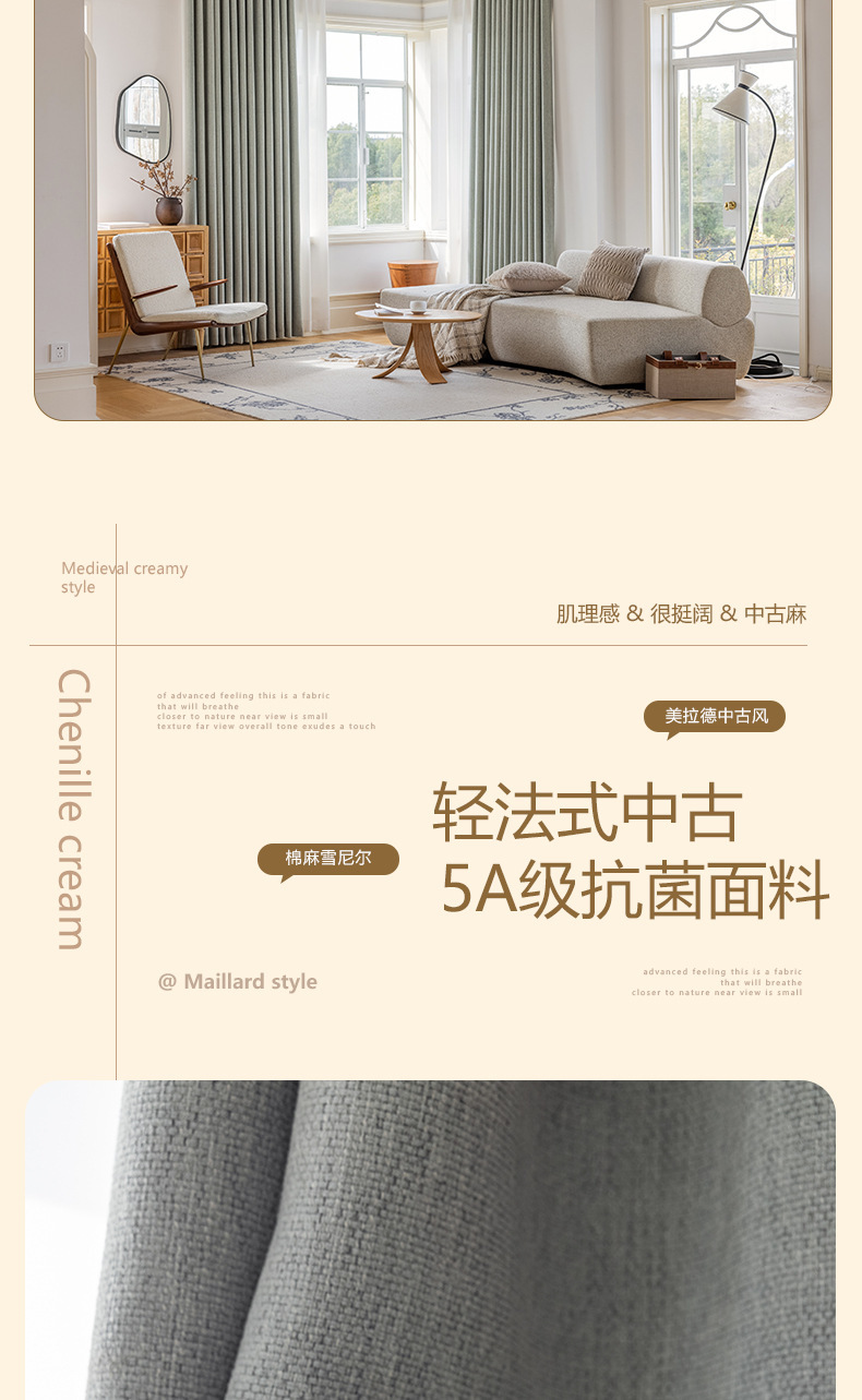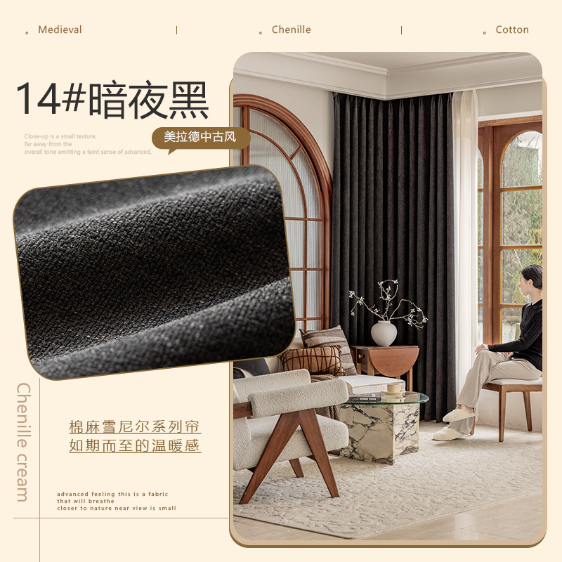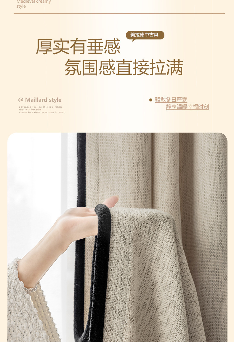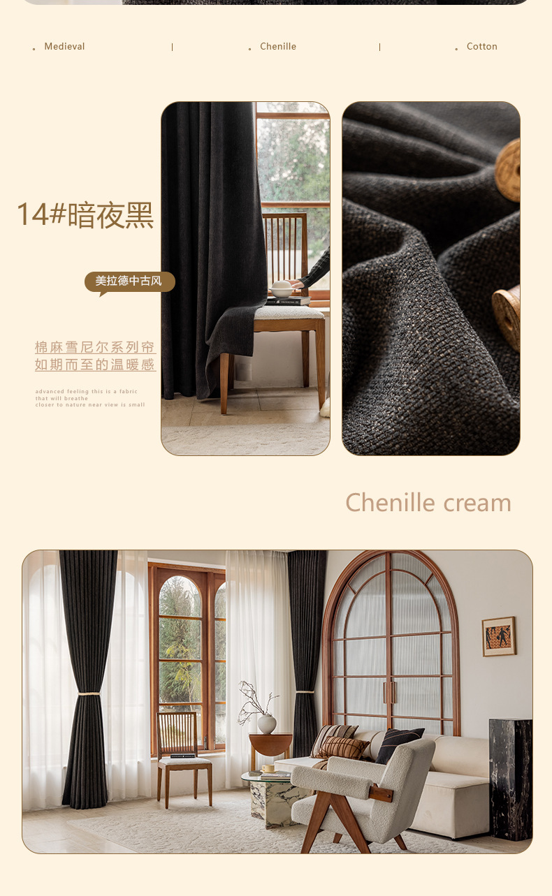 2024 새로운 프랑스 스타일 엔트리 럭셔리 Chenille 크림 벨벳 침실을위한 두꺼운 커튼 고급 쉐이싱 Keqiao
