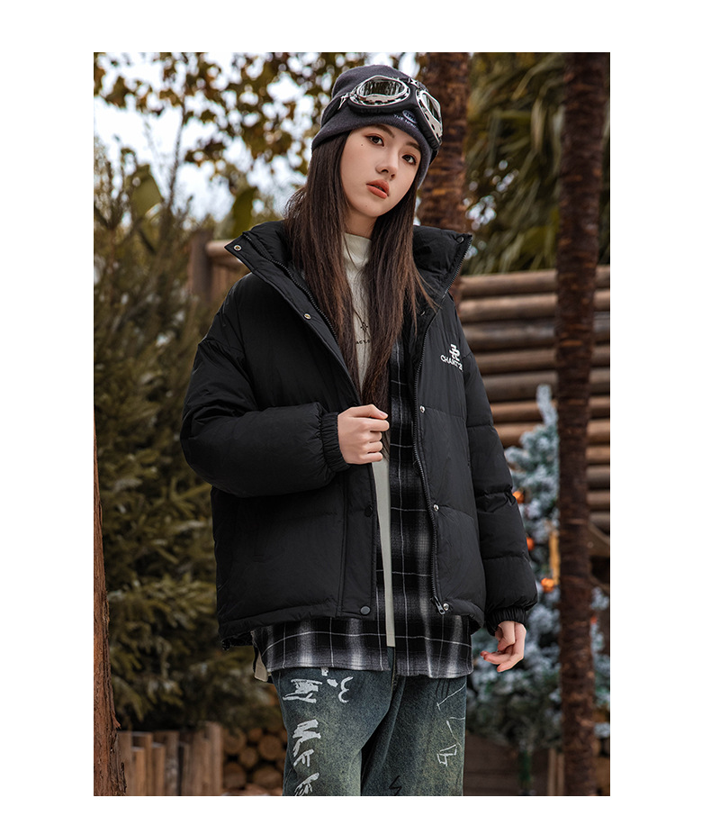 수직 칼라가있는 소녀의 빅 보이 다운 재킷 2024 큰 소년의 두꺼운 흰 오리 다운 빵 자켓 중학생을위한 느슨한 겨울 옷스토어 가기