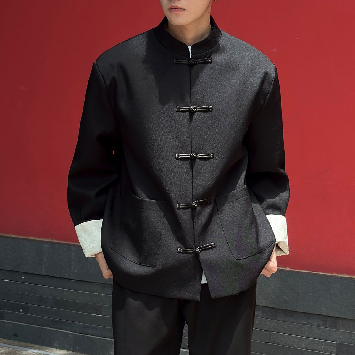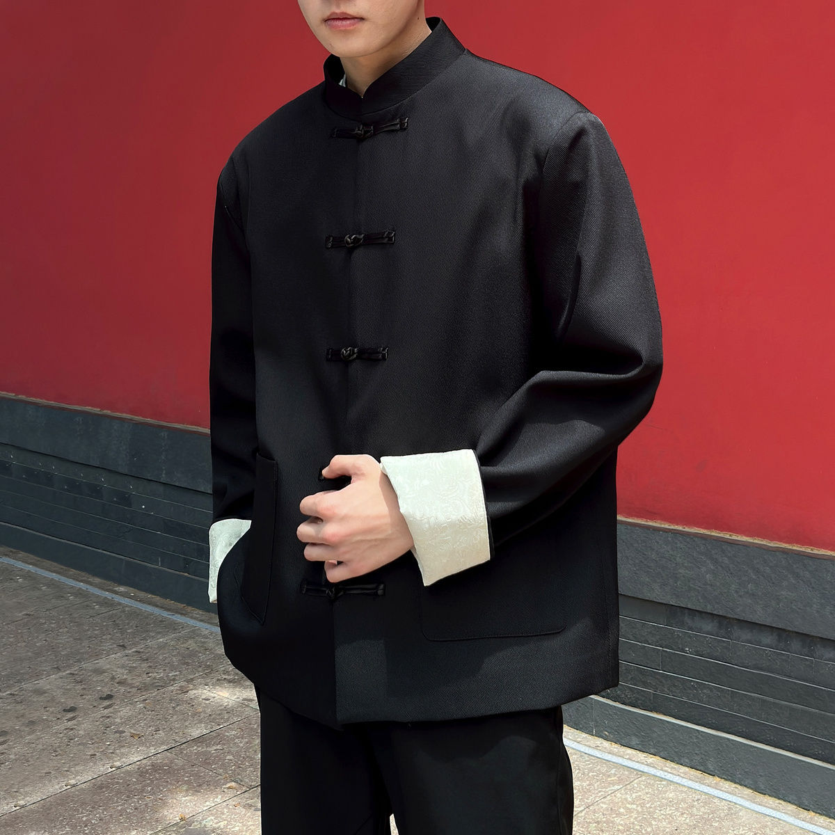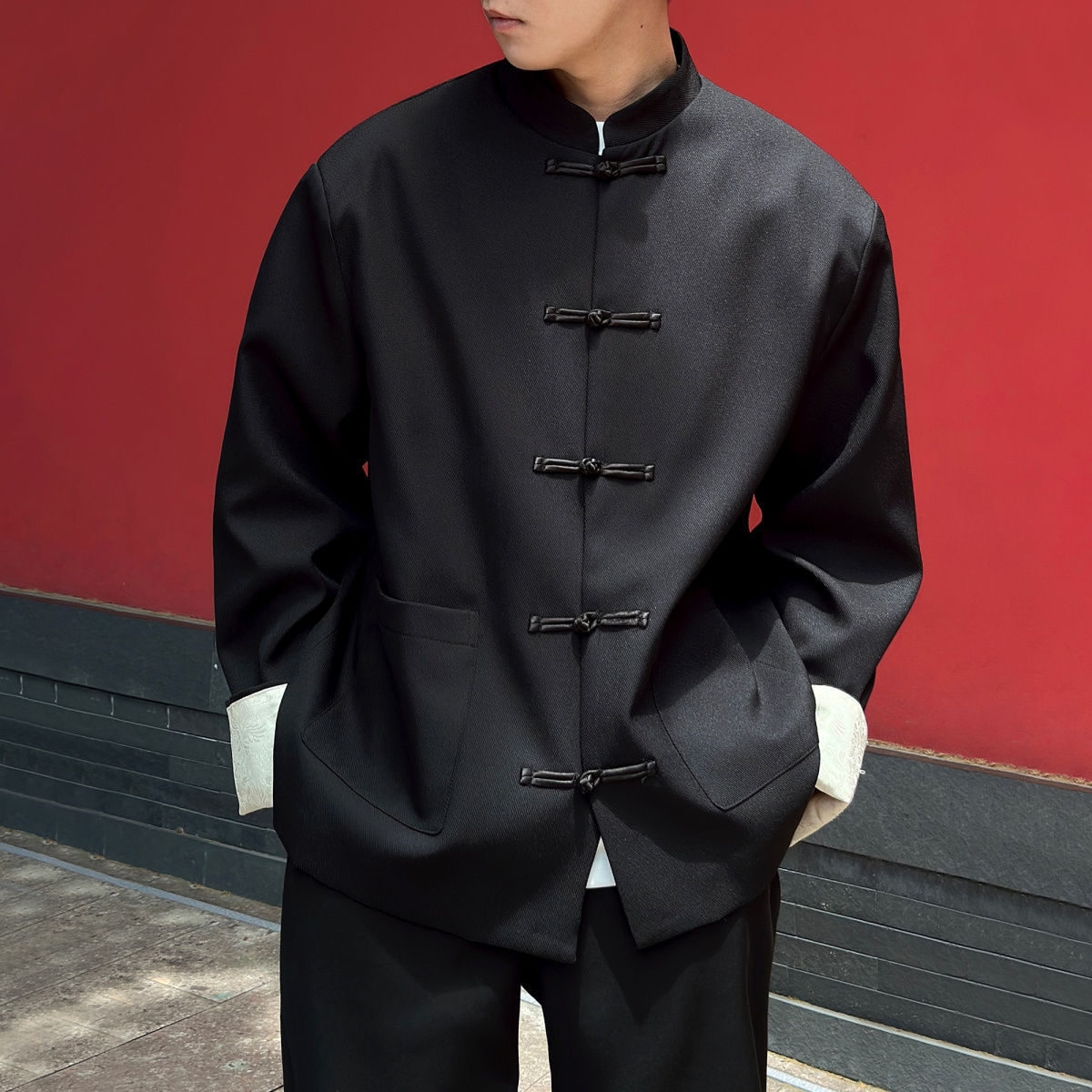 새로운 중국 스타일 국가 스타일 중국 튜닉 세트 하이 엔드 레트로 수직 칼라 버튼 세트 재킷 남자 봄과 가을 재킷 세트 트렌디스토어 가기