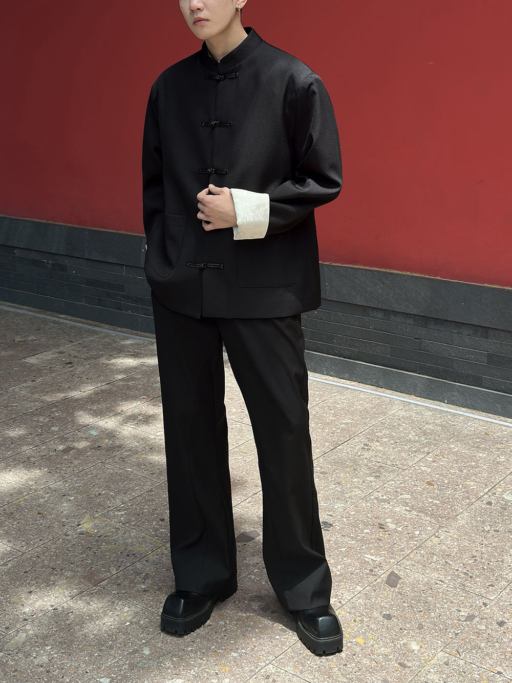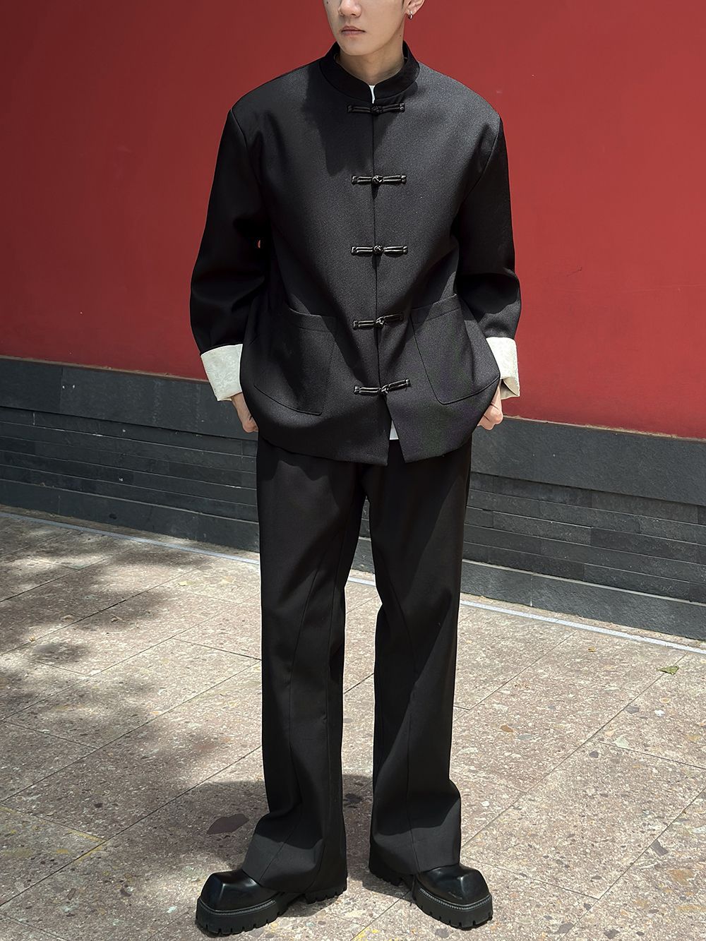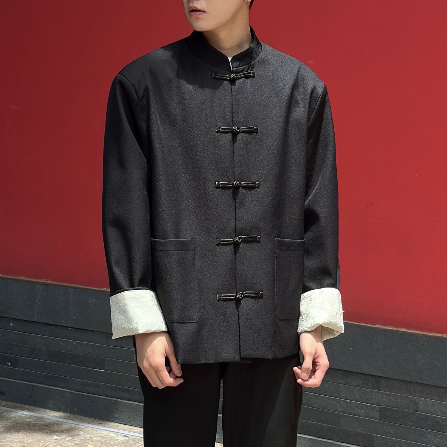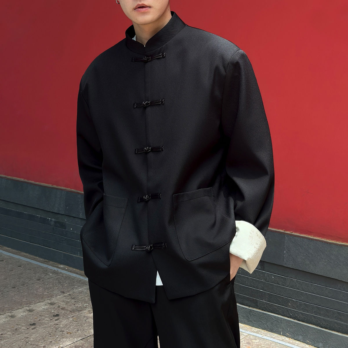 새로운 중국 스타일 국가 스타일 중국 튜닉 세트 하이 엔드 레트로 수직 칼라 버튼 세트 재킷 남자 봄과 가을 재킷 세트 트렌디스토어 가기